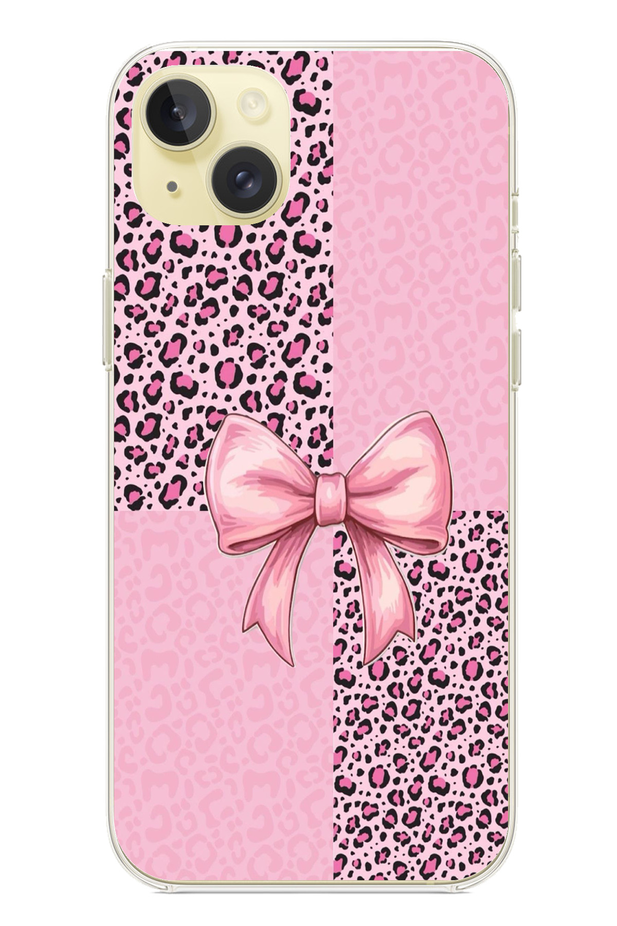 TechTree حافظة سيليكون متوافقة مع هاتف iPhone 15 PLUS بنمط الفهد الوردي وشريط مطبوع