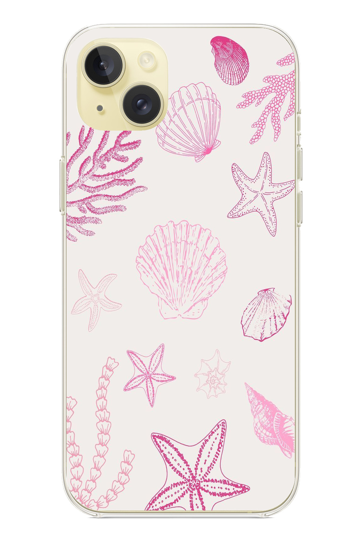 TechTree حافظة سيليكون متوافقة مع هاتف iPhone 15 PLUS باللون الوردي وStarfish and Shell مطبوع