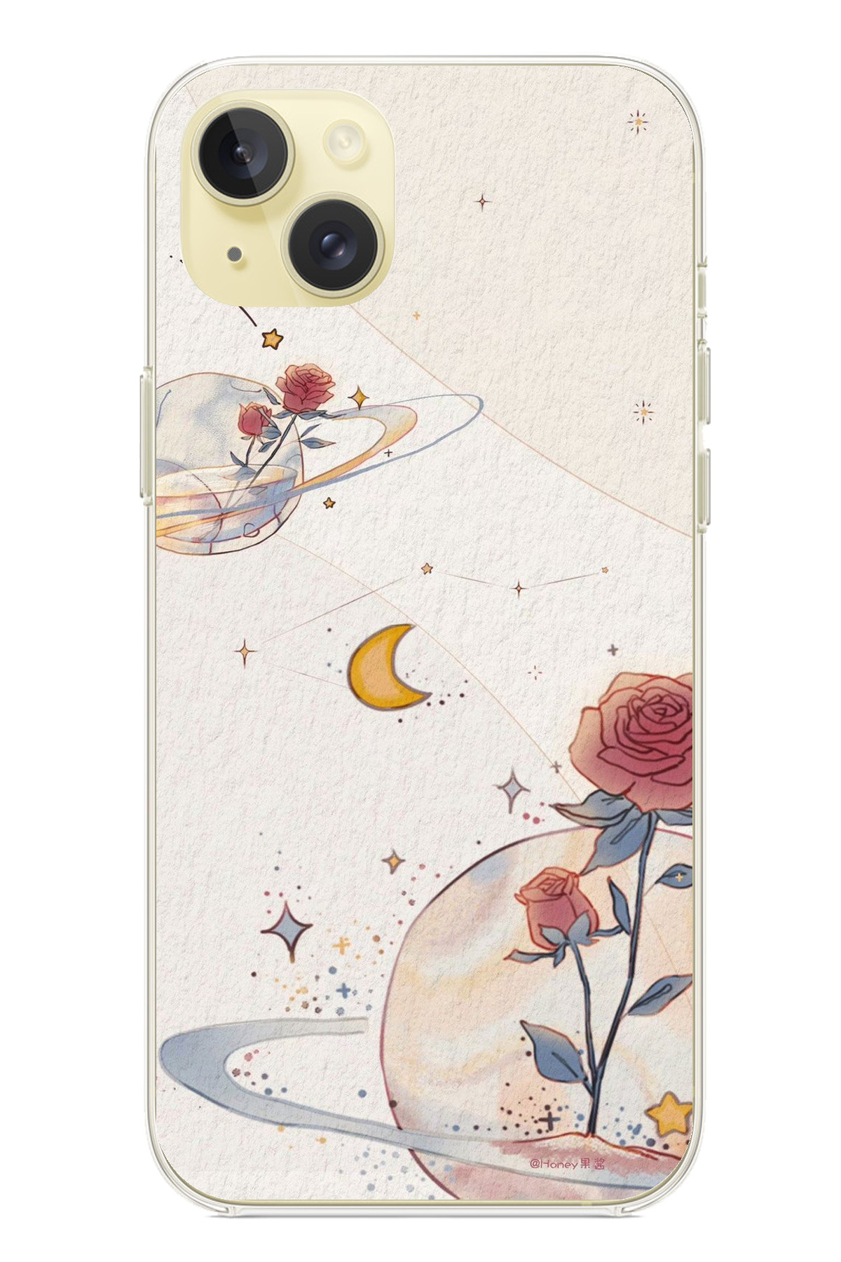 TechTree حافظة سيليكون متوافقة مع هاتف iPhone 15 PLUS، Planet and Star and Rose مطبوع