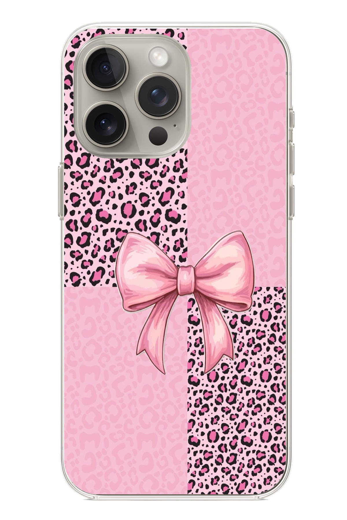 TechTree حافظة سيليكون متوافقة مع هاتف iPhone 15 PRO بنمط الفهد الوردي وشريط مطبوع