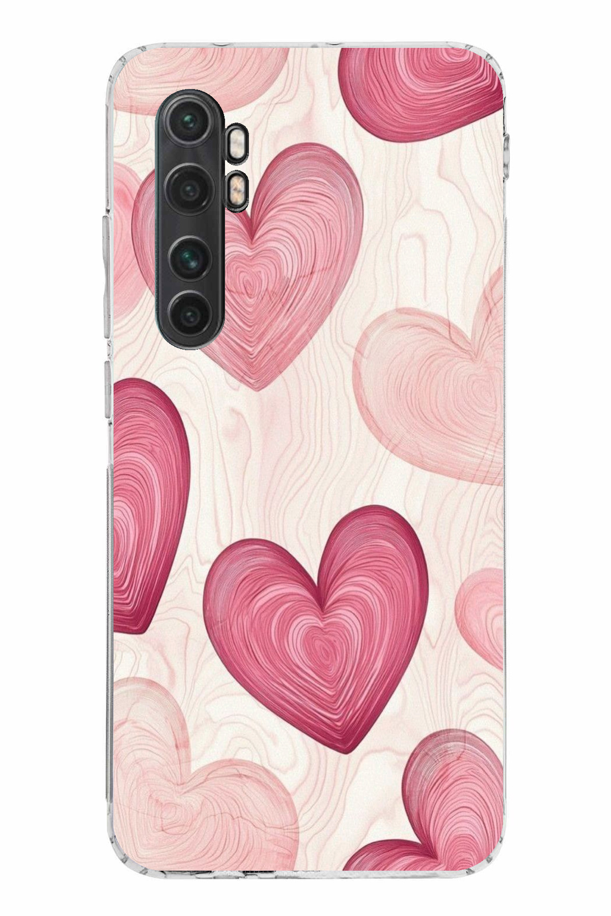 TechTree حافظة سيليكون متوافقة مع هاتف Mi Note 10 Lite باللون الوردي الخطوي مطبوع