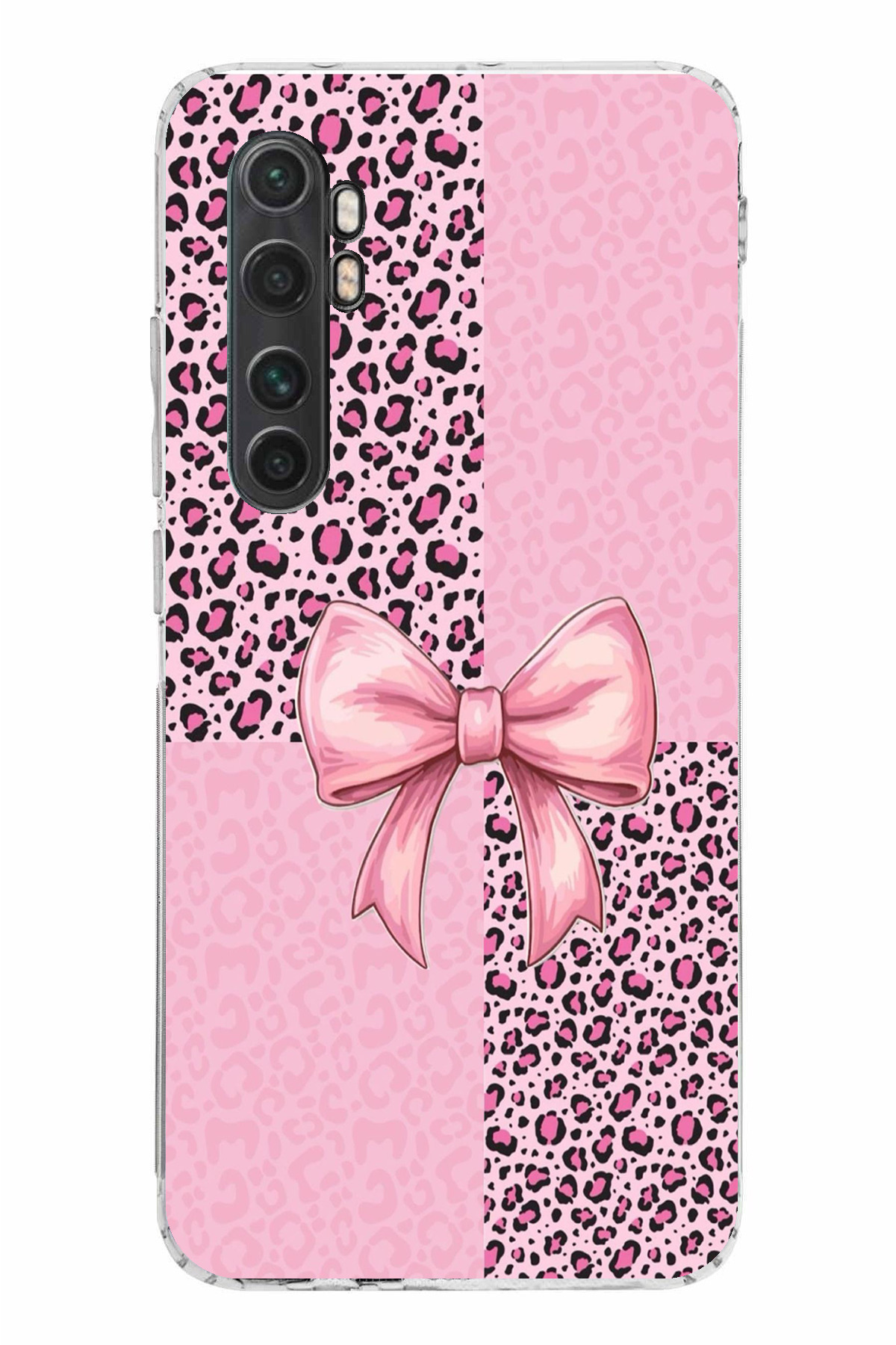 ميزات حافظة سيليكون متوافقة مع هاتف Mi Note 10 Lite بنمط الفهد الوردي وشريط مطبوع من TechTree