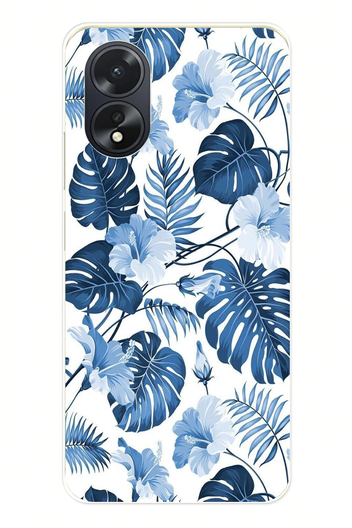 TechTree حافظة سيليكون مطبوع متوافقة مع هاتف اوبو A38 بنمط أوراق الشجر الزرقاء والزهور