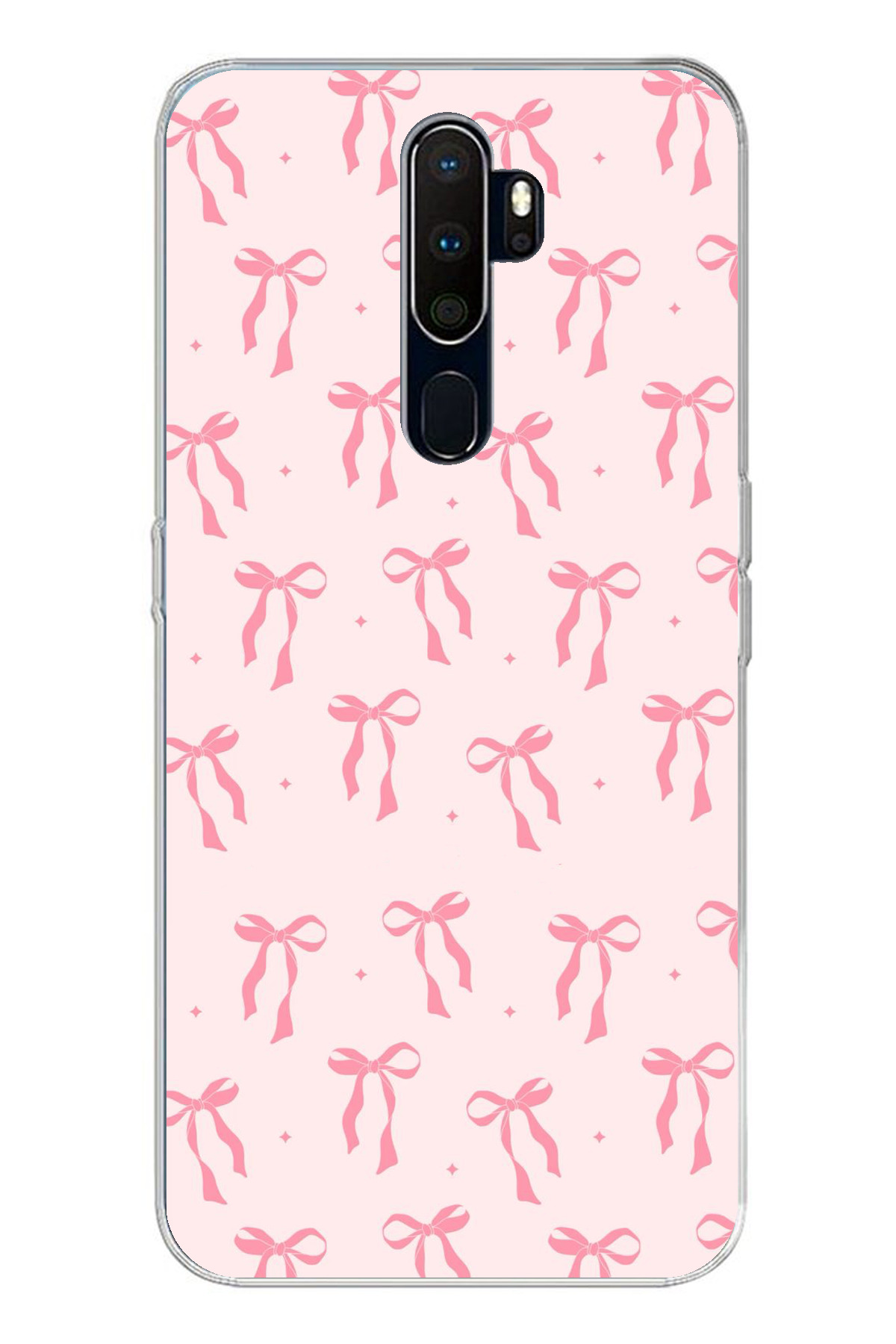 TechTree حافظة سيليكون مطبوعة بنمط فيونكة وردية ناعمة متوافقة مع هاتف اوبو A5/A9 2020