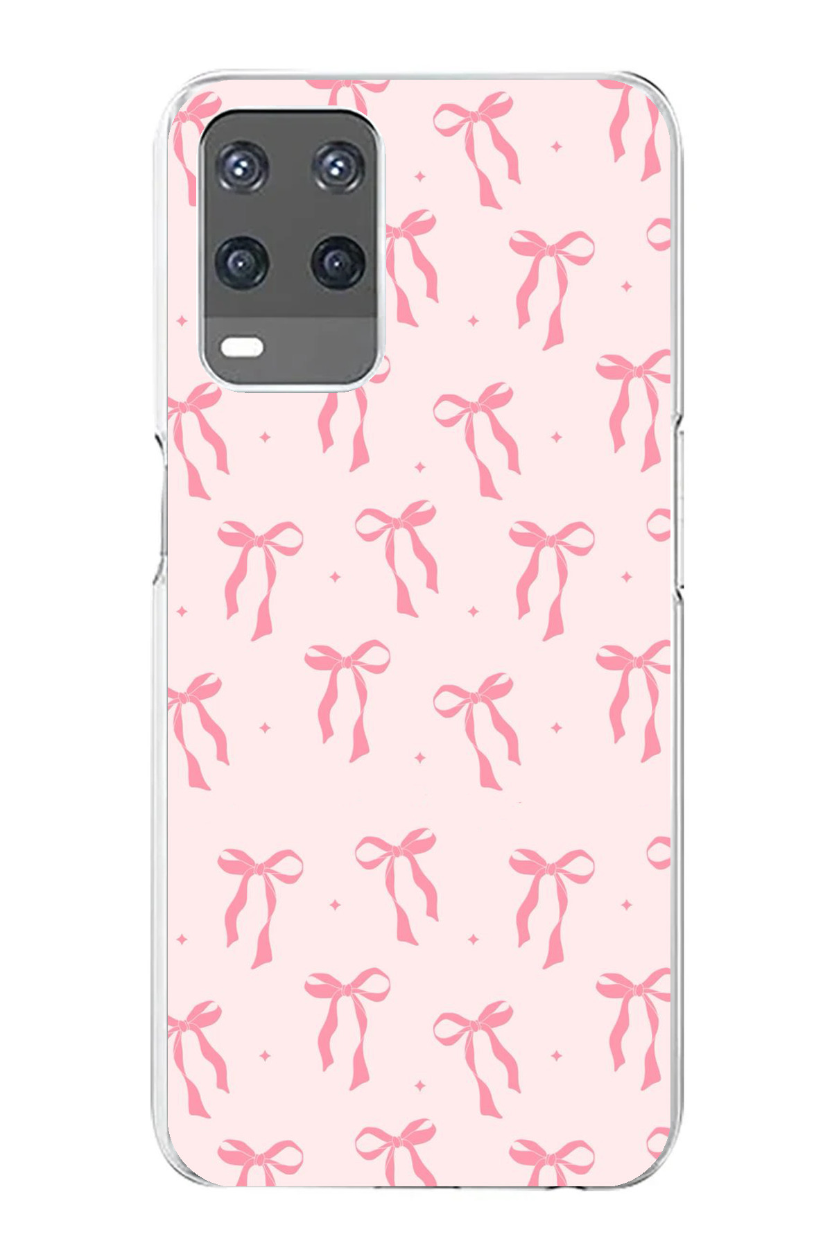 ميزات حافظة سيليكون مطبوع متوافقة مع هاتف OPPO A54 بنمط فيونكة وردية ناعمة من TechTree