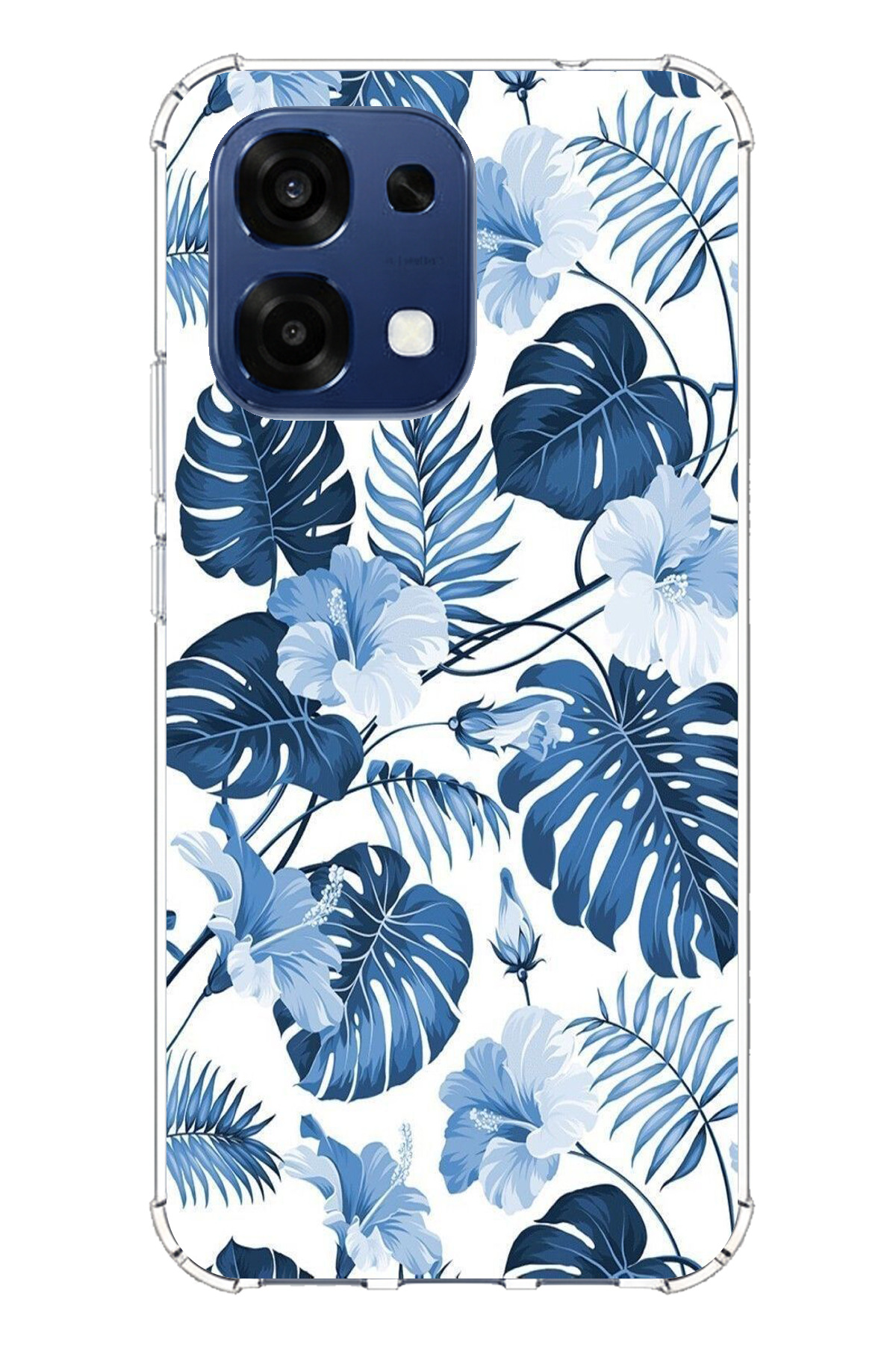 ميزات حافظة سيليكون مطبوع متوافقة مع هاتف اوبو A6 برو بنمط أوراق الشجر الزرقاء والزهور من TechTree