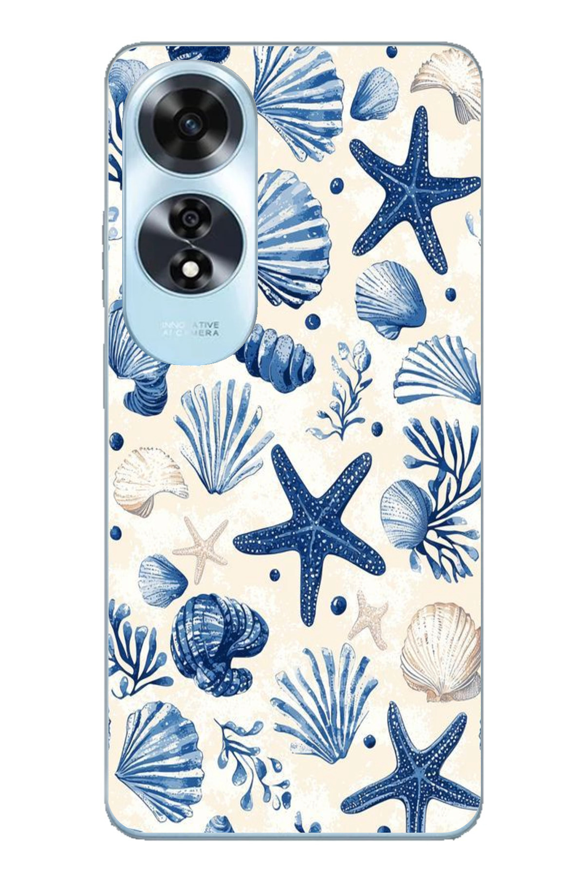 TechTree حافظة سيليكون مطبوع متوافقة مع هاتف اوبو A60 بنمط صدفة البحر الزرقاء والنجمة