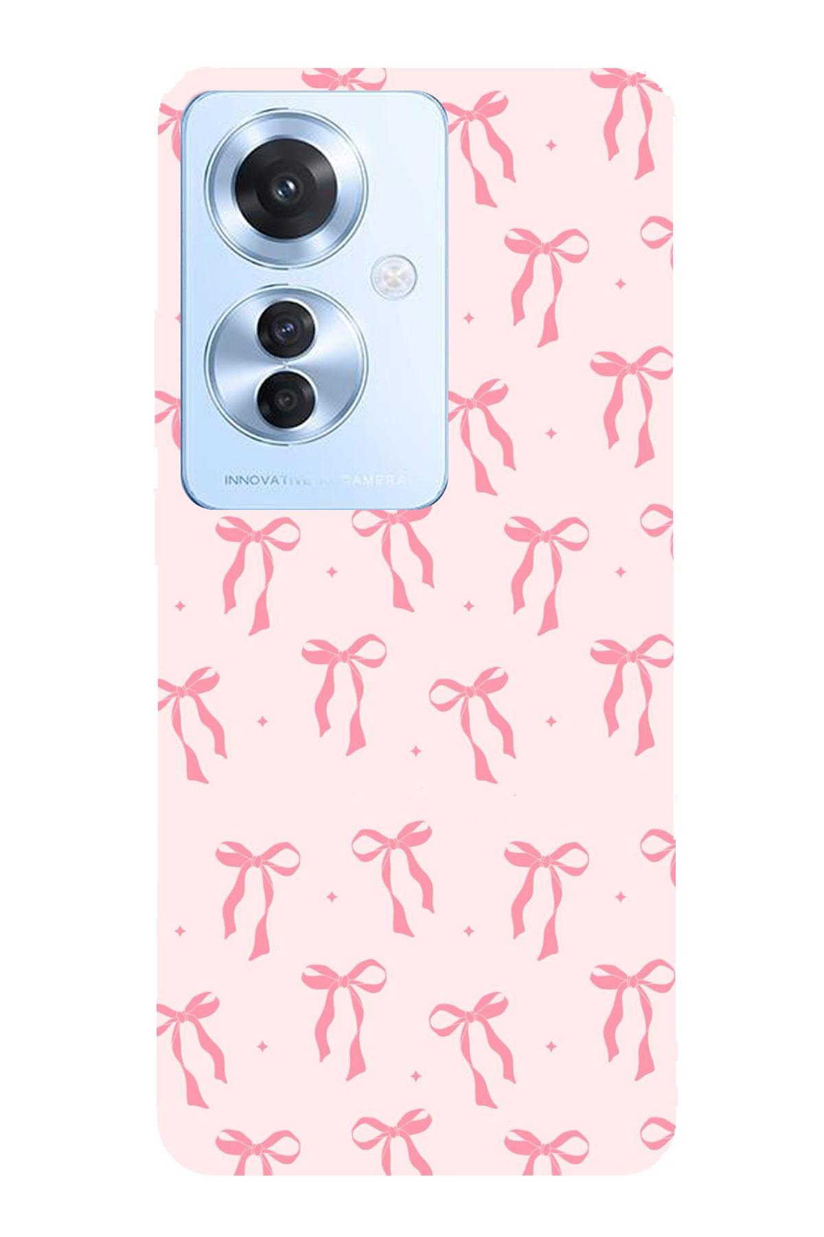ميزات حافظة سيليكون مطبوع متوافقة مع هاتف OPPO Reno 11F بنمط فيونكة وردية ناعمة من TechTree