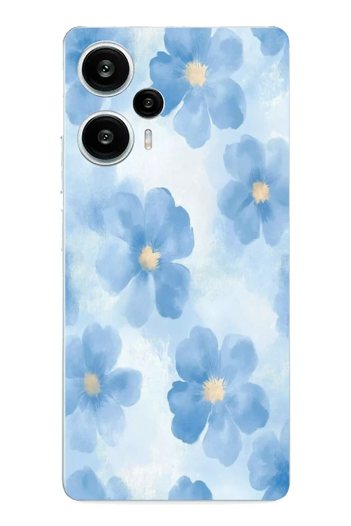 ميزات حافظة سيليكون متوافقة مع هاتف POCO F5 باللون الأزرق الزهري مطبوع من TechTree