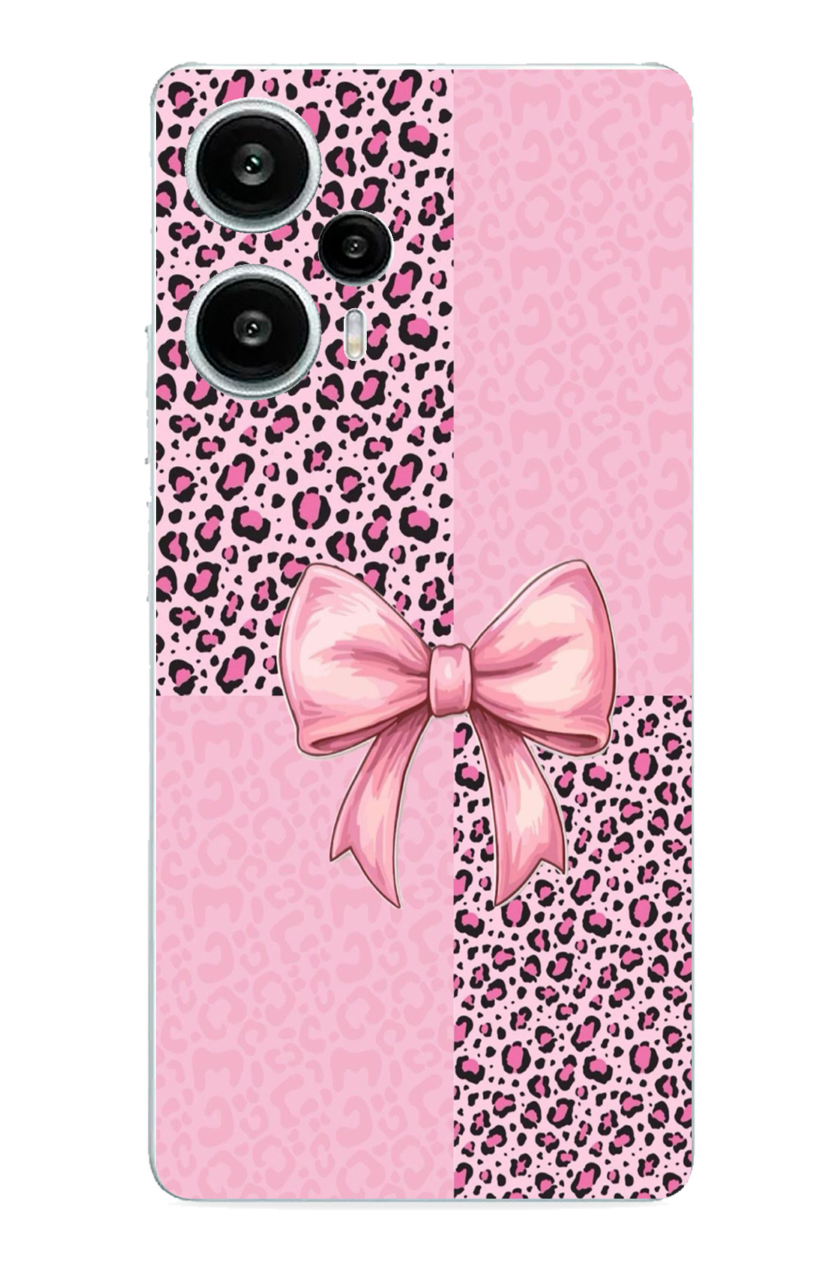 TechTree حافظة سيليكون متوافقة مع POCO F5 بنمط الفهد الوردي وشريط مطبوع