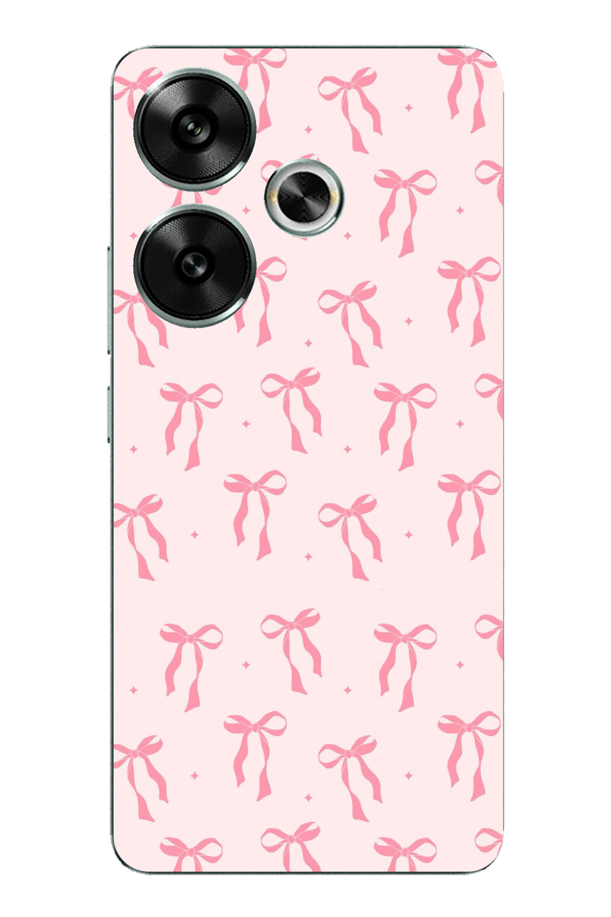 ميزات حافظة سيليكون مطبوع متوافقة مع POCO F6 بنمط فيونكة وردية ناعمة من TechTree