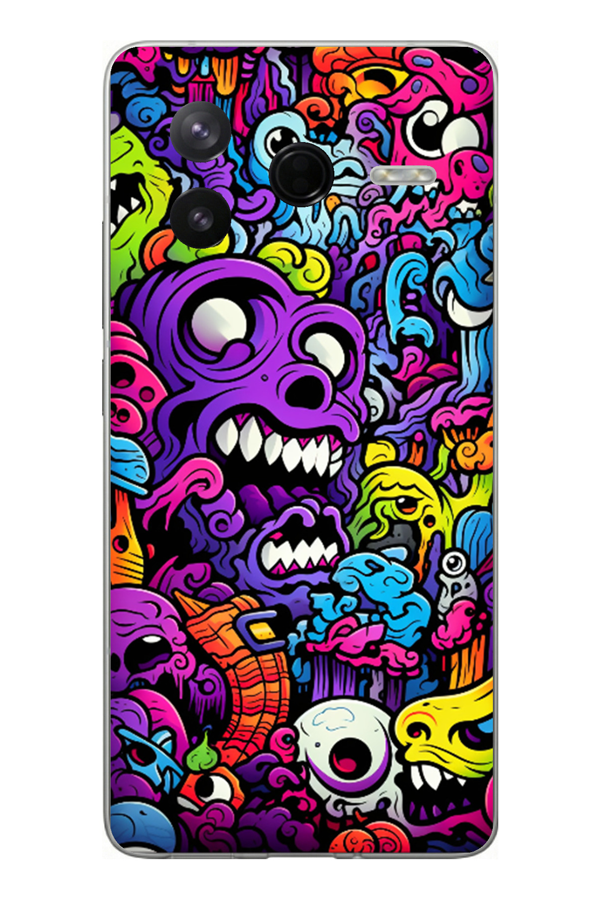 TechTree حافظة سيليكون متوافقة مع Poco F7 Pro من Psychedelic Colorful Monsters مطبوع