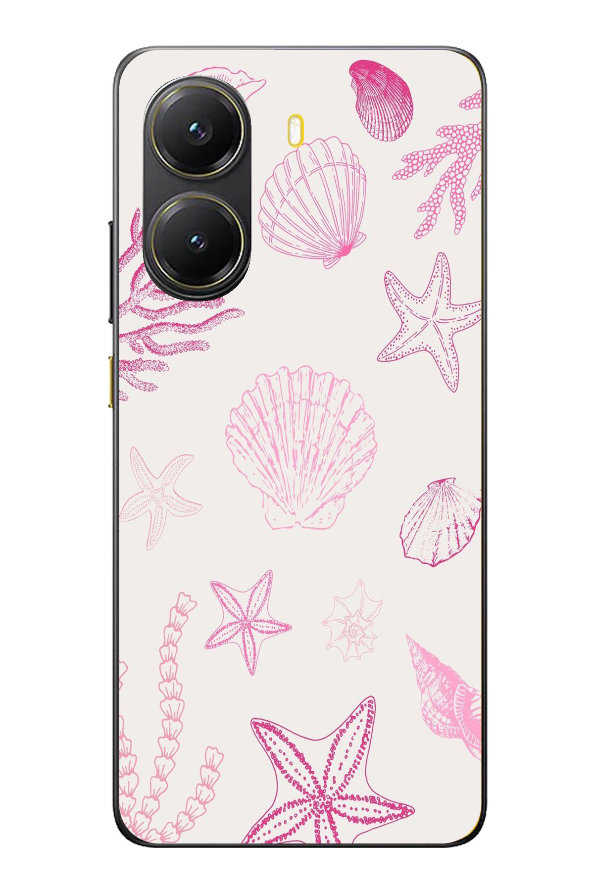 ميزات حافظة سيليكون متوافقة مع POCO X7 PRO باللون الوردي وStarfish and Shell مطبوع من TechTree