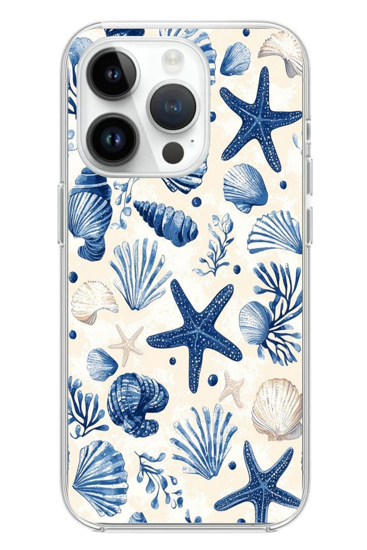 TechTree حافظة سيليكون مطبوع متوافقة مع هاتف iPhone 14 PRO بنمط صدفة البحر الزرقاء والنجمة