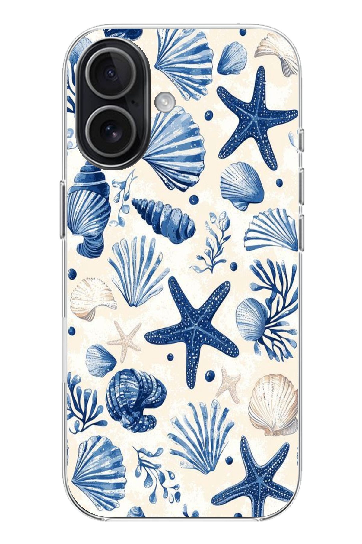 ميزات حافظة سيليكون مطبوع متوافقة مع هاتف iPhone 17 بنمط صدفة البحر الزرقاء والنجمة من TechTree
