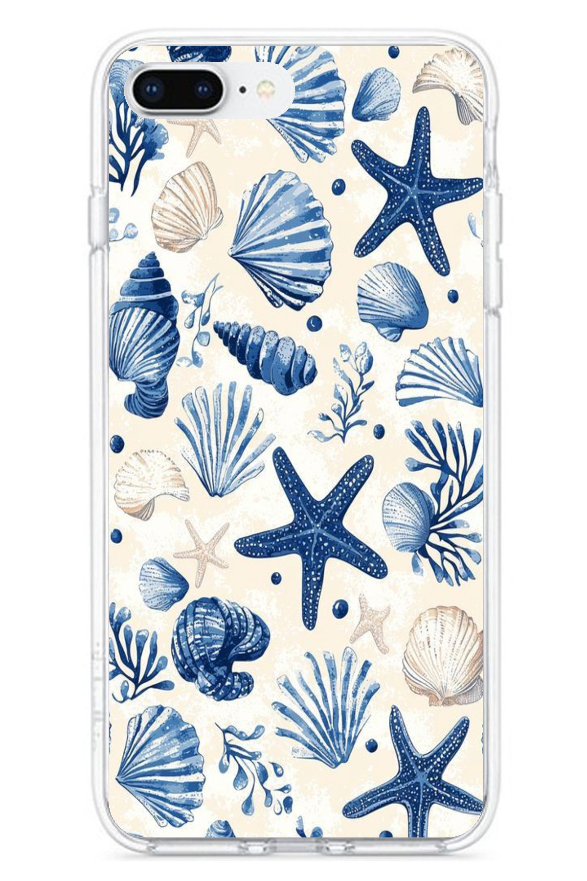 TechTree حافظة سيليكون مطبوع متوافقة مع هاتف iPhone 7 PLUS-8 PLUS بنمط صدفة البحر الزرقاء والنجمة