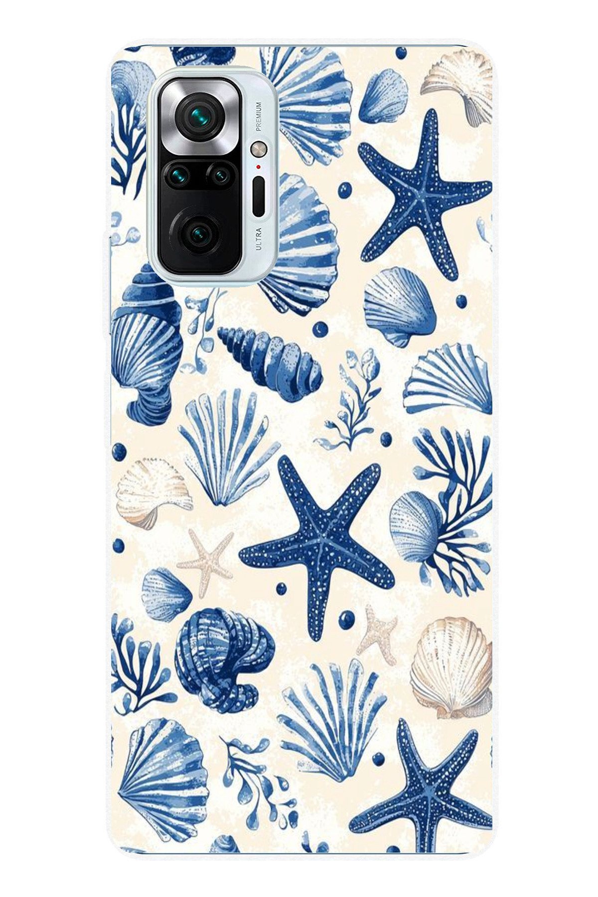 ميزات حافظة سيليكون مطبوع متوافقة مع هاتف Redmi Note 10 PRO بنمط صدفة البحر الزرقاء والنجمة من TechTree
