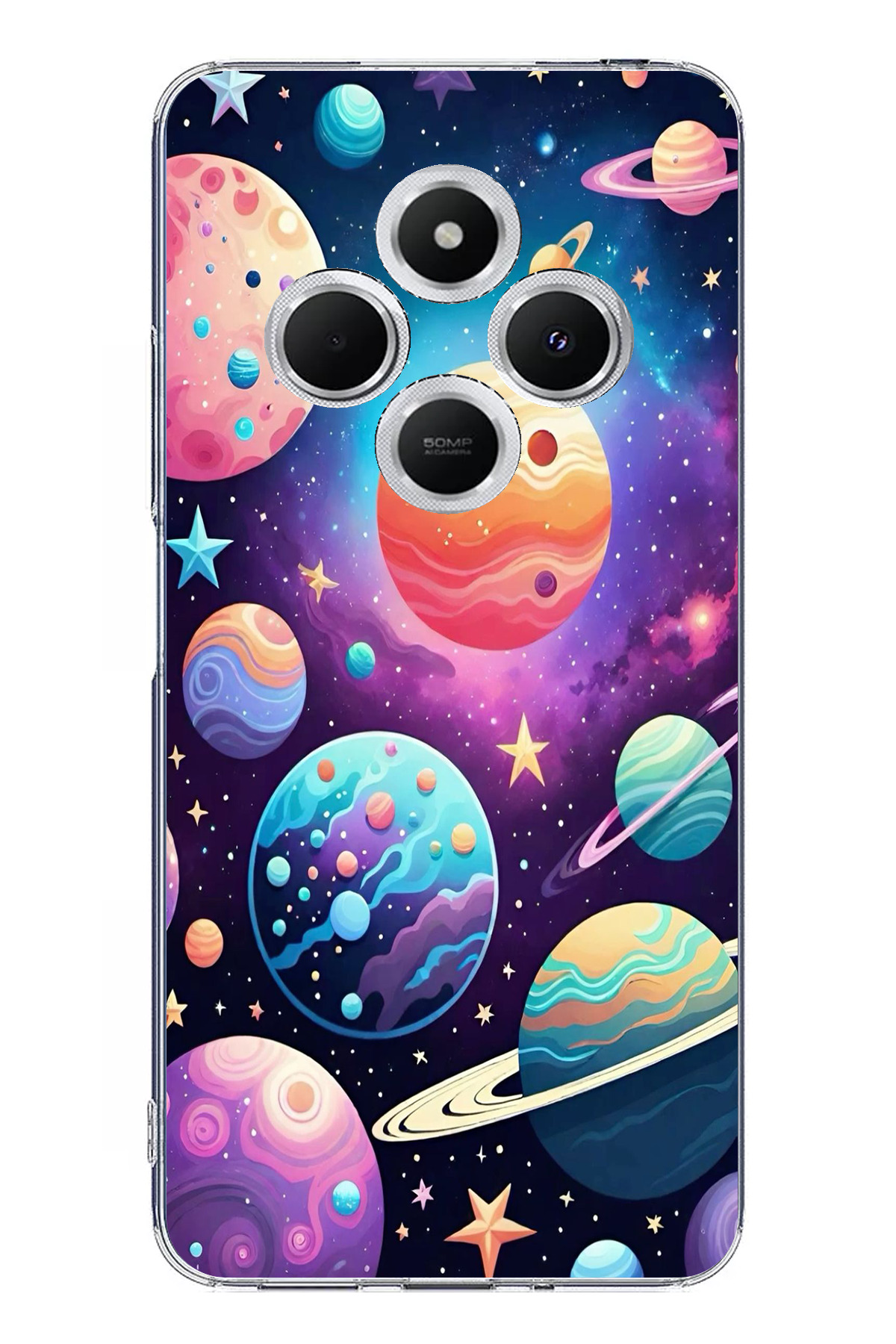 ميزات حافظة سيليكون مطبوع متوافقة مع هاتف Redmi 14C بنمط الفضاء والكواكب والنجوم من TechTree