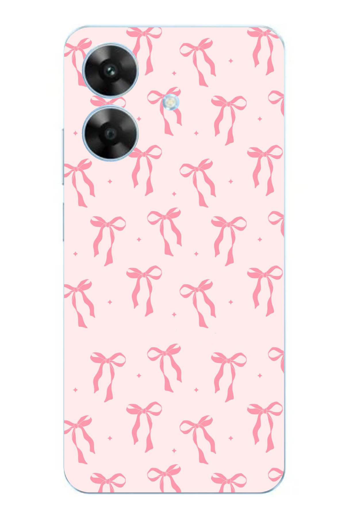 ميزات حافظة سيليكون مطبوع متوافقة مع هاتف Realme Note 60 بنمط فيونكة وردية ناعمة من TechTree