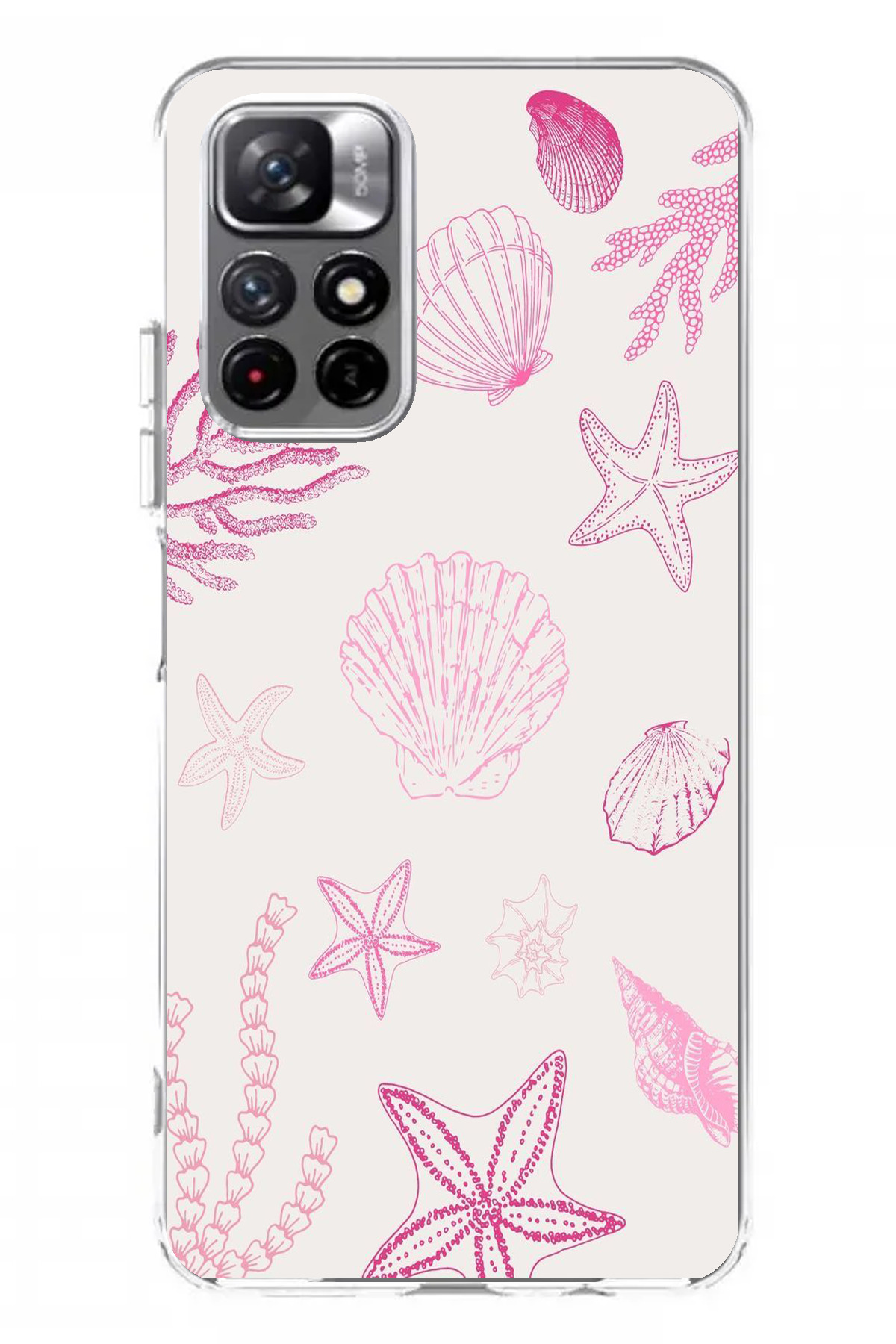 ميزات حافظة سيليكون متوافقة مع هاتف Redmi 10 باللون الوردي وStarfish and Shell مطبوع من TechTree
