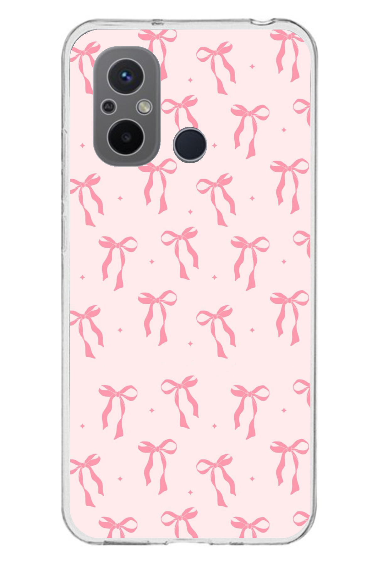 ميزات حافظة سيليكون مطبوع متوافقة مع هاتف Redmi 12C بنمط فيونكة وردية ناعمة من TechTree