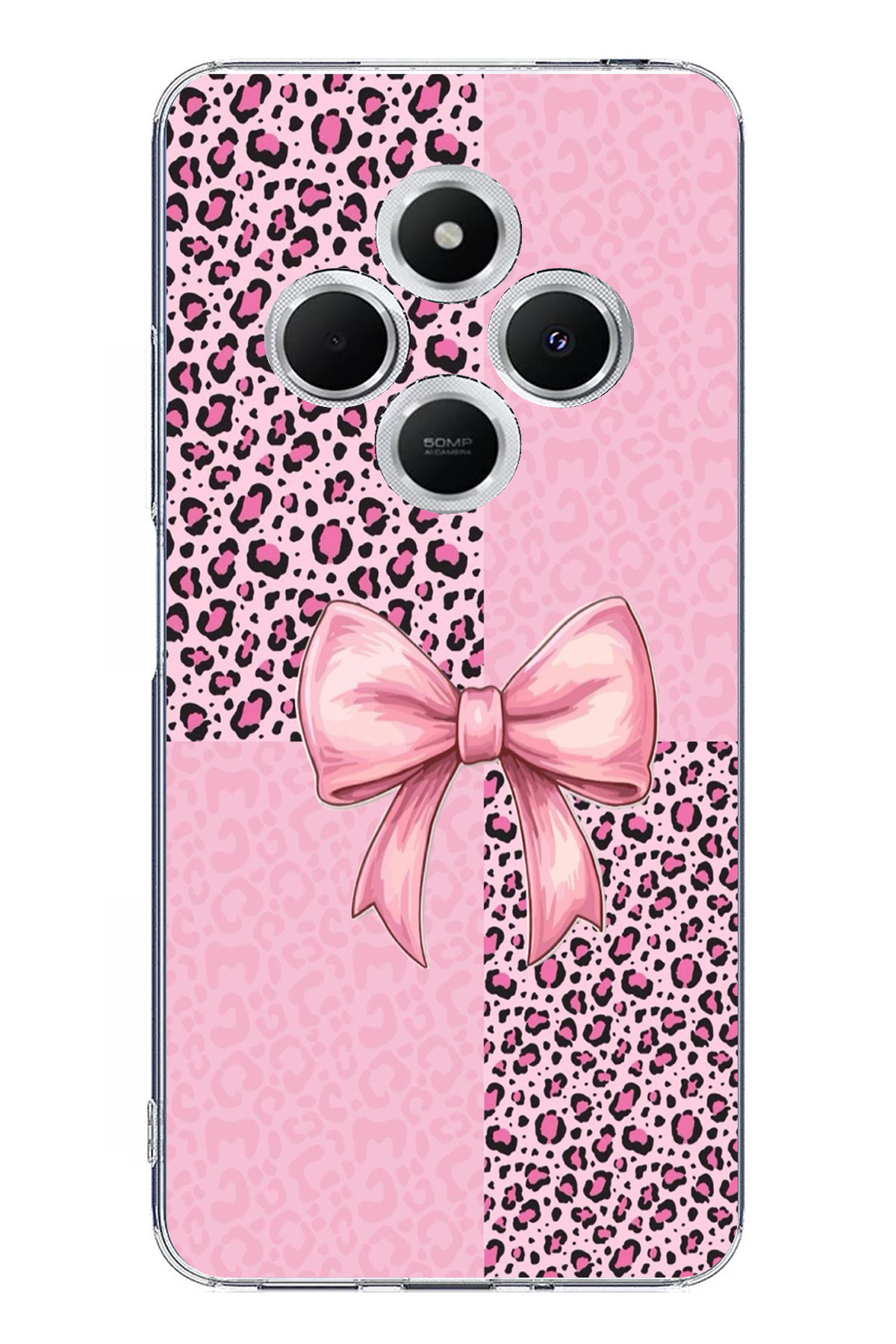 TechTree حافظة سيليكون متوافقة مع هاتف Redmi 14C بنمط الفهد الوردي وشريط مطبوع
