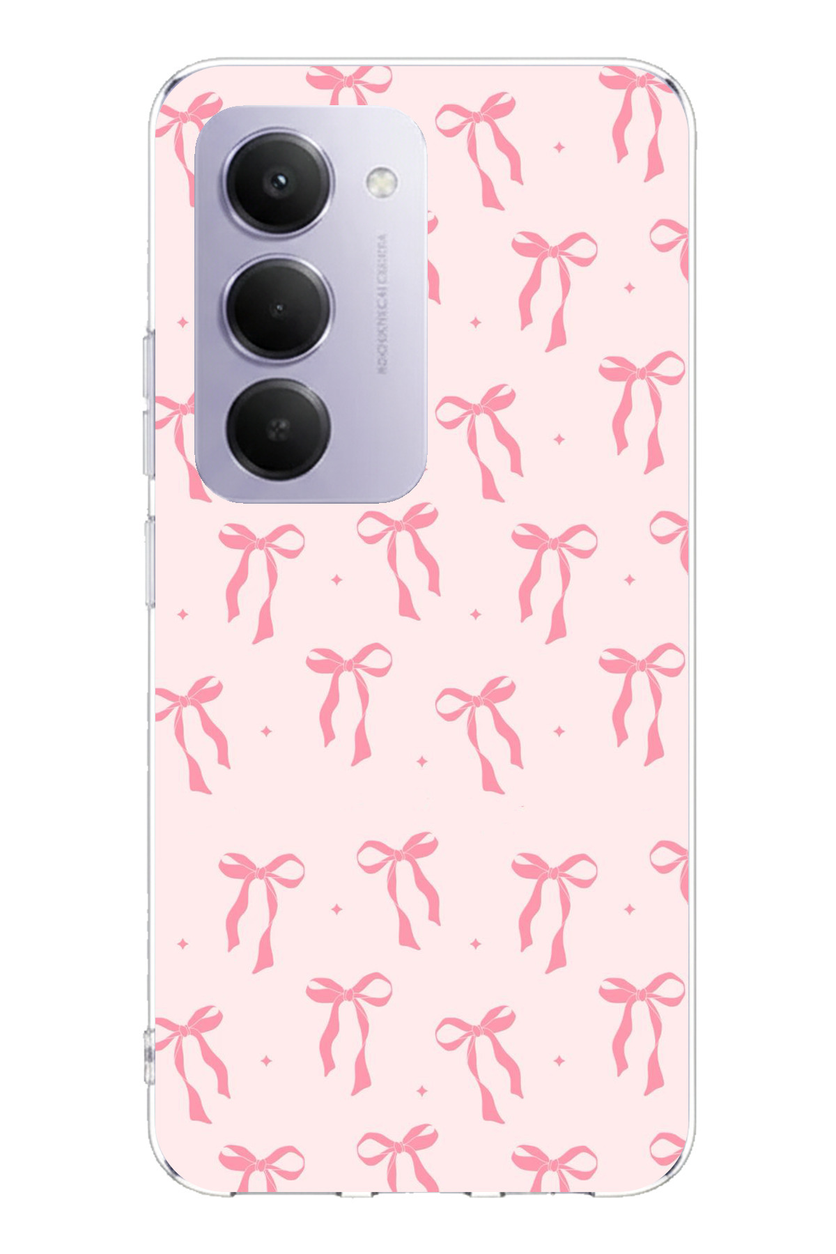 ميزات حافظة سيليكون مطبوع متوافقة مع هاتف Redmi 15 4G بنمط فيونكة وردية ناعمة من TechTree