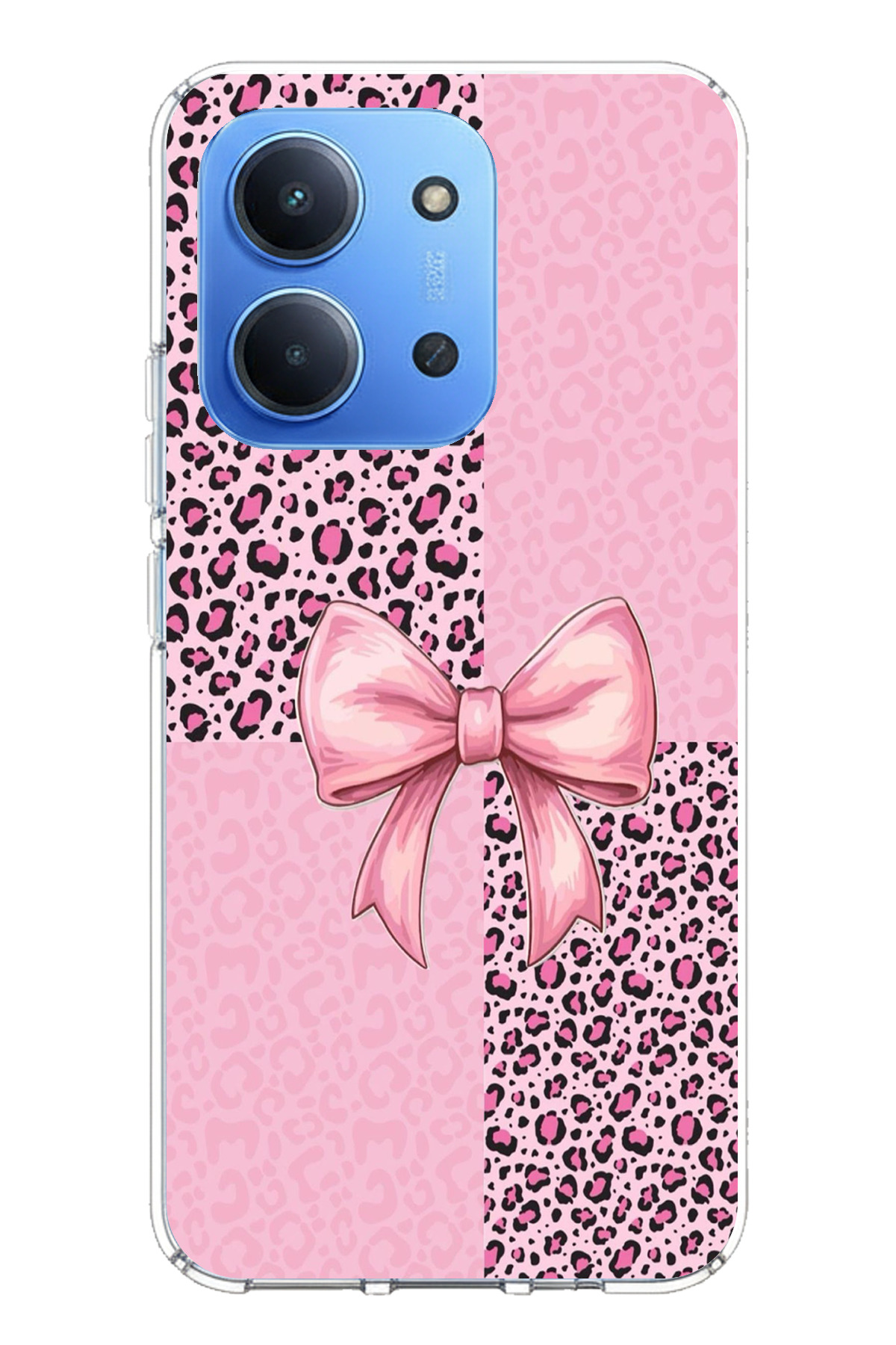 TechTree حافظة سيليكون متوافقة مع Redmi 15C بنمط الفهد الوردي وشريط مطبوع