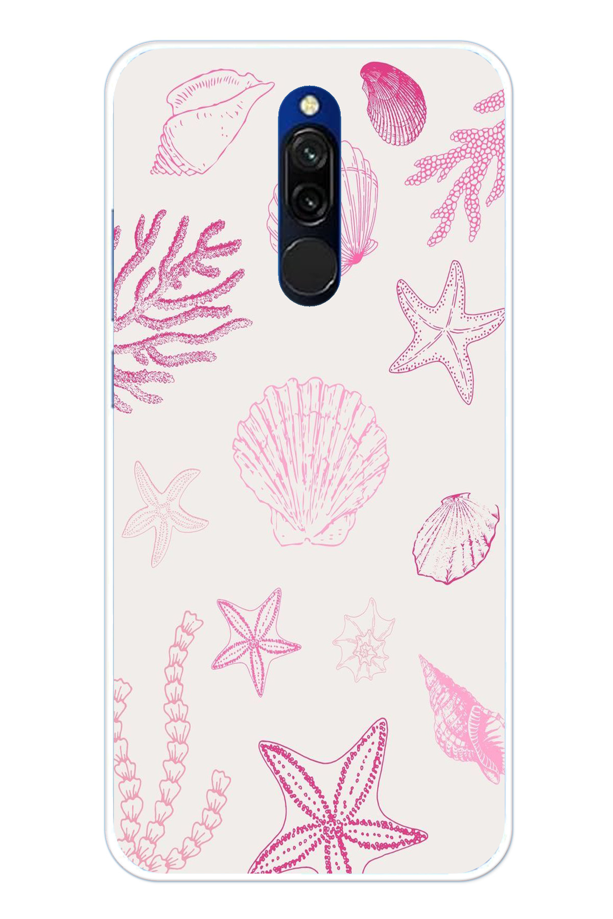 ميزات حافظة سيليكون متوافقة مع هاتف Redmi 8 باللون الوردي وStarfish and Shell مطبوع من TechTree