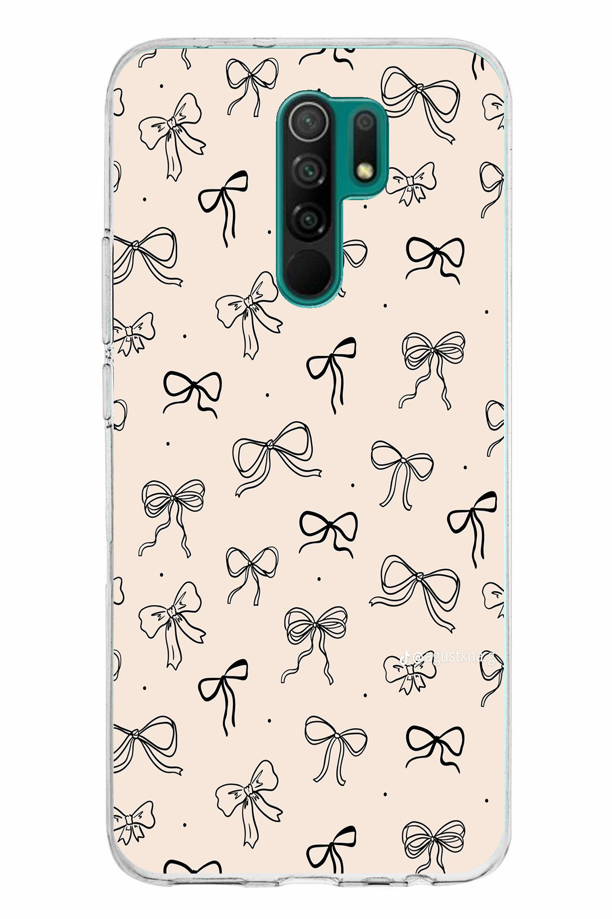 ميزات حافظة سيليكون متوافقة مع هاتف Redmi 9 باللون الأسود ذات نمط فيونكة باللون الكريمي مطبوع من TechTree