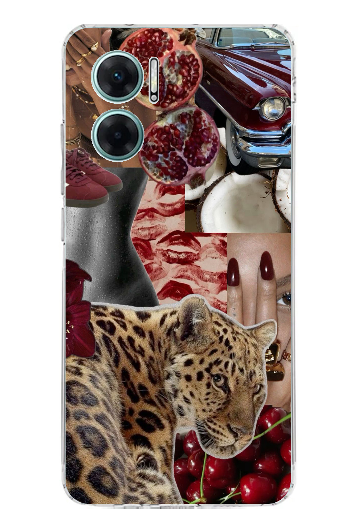 ميزات حافظة سيليكون متوافقة مع هاتف Redmi Note 11E باللون الأحمر الفهد مطبوع من TechTree