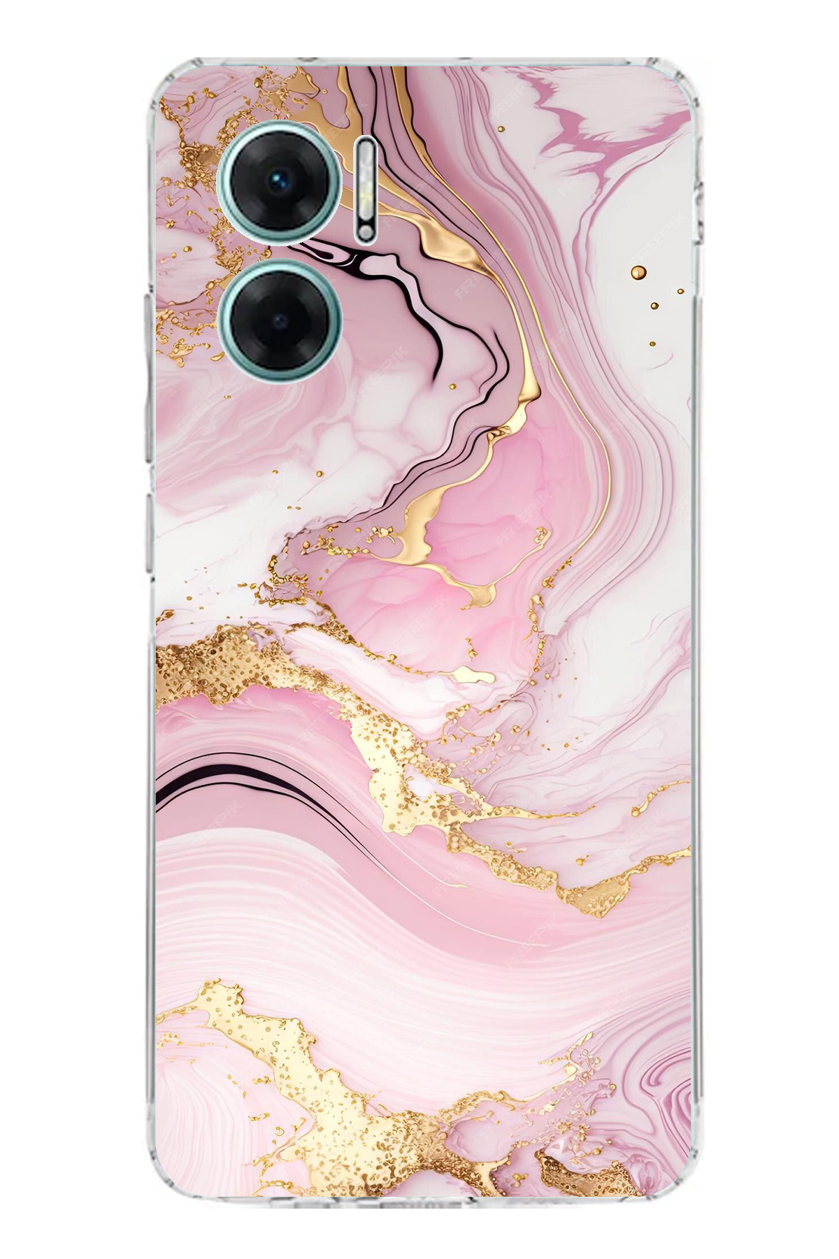 TechTree حافظة سيليكون متوافقة مع هاتف Redmi Note 11E باللون الوردي الرخامي مطبوع