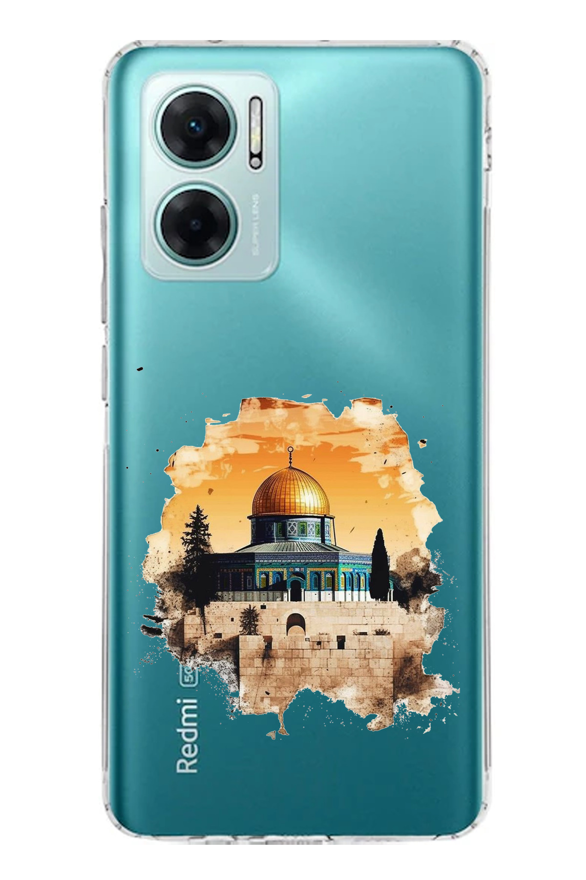 ميزات حافظة سيليكون مطبوع متوافقة مع هاتف Redmi Note 11E بتصميم المسجد الأقصى من TechTree