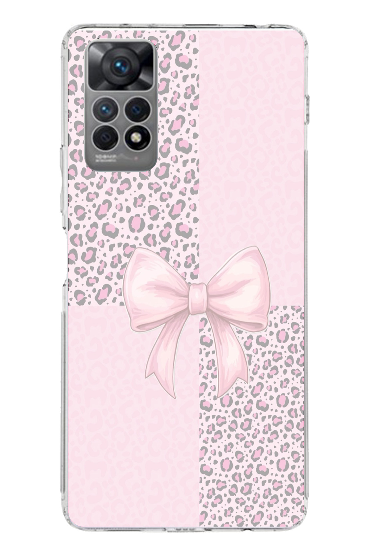 ميزات حافظة سيليكون متوافقة مع هاتف Redmi Note 12 PRO 4G بنمط الفهد الوردي وشريط مطبوع من TechTree
