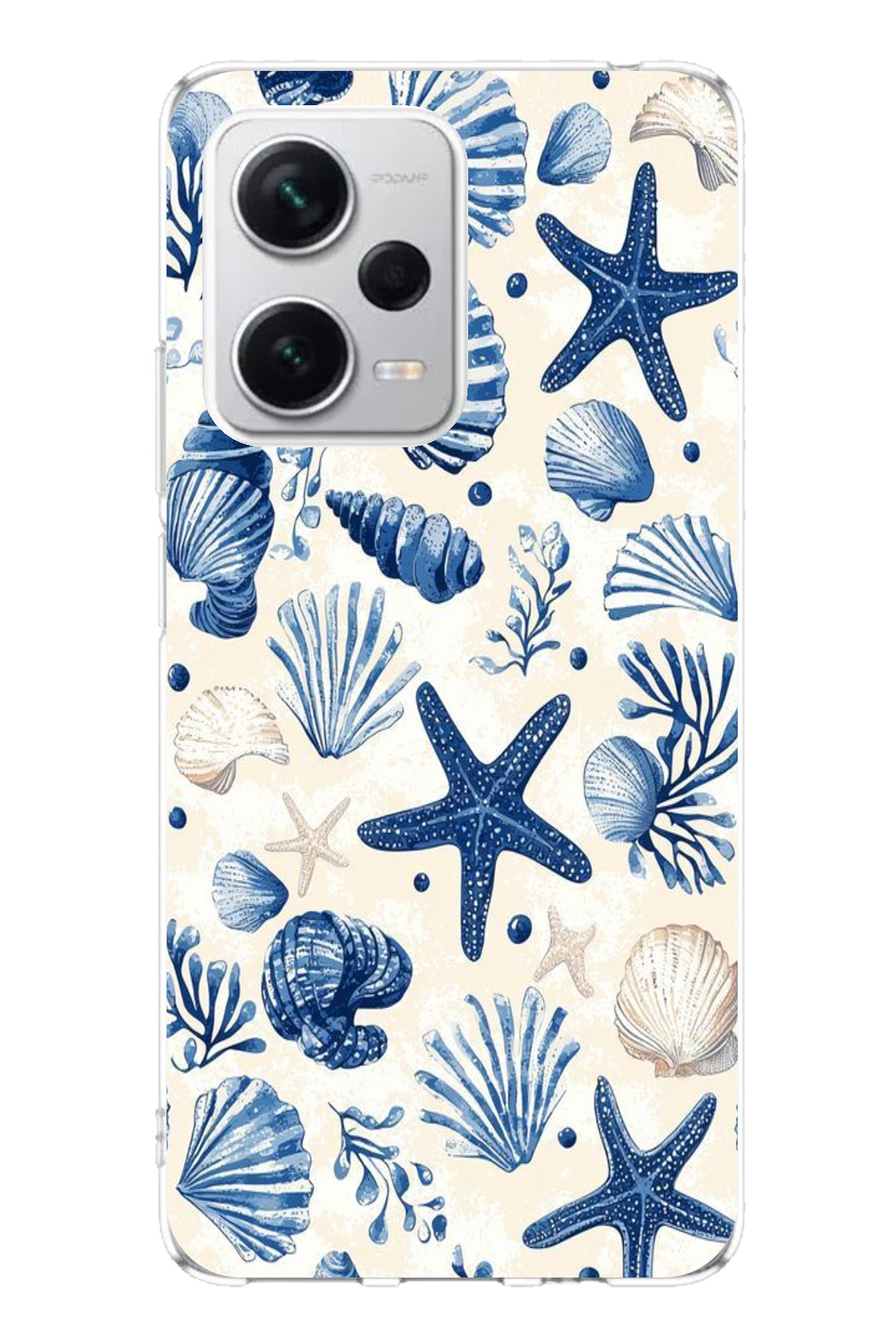 ميزات حافظة سيليكون مطبوع متوافقة مع هاتف Redmi Note 12 PRO PLUS بنمط صدفة البحر الزرقاء والنجمة من TechTree