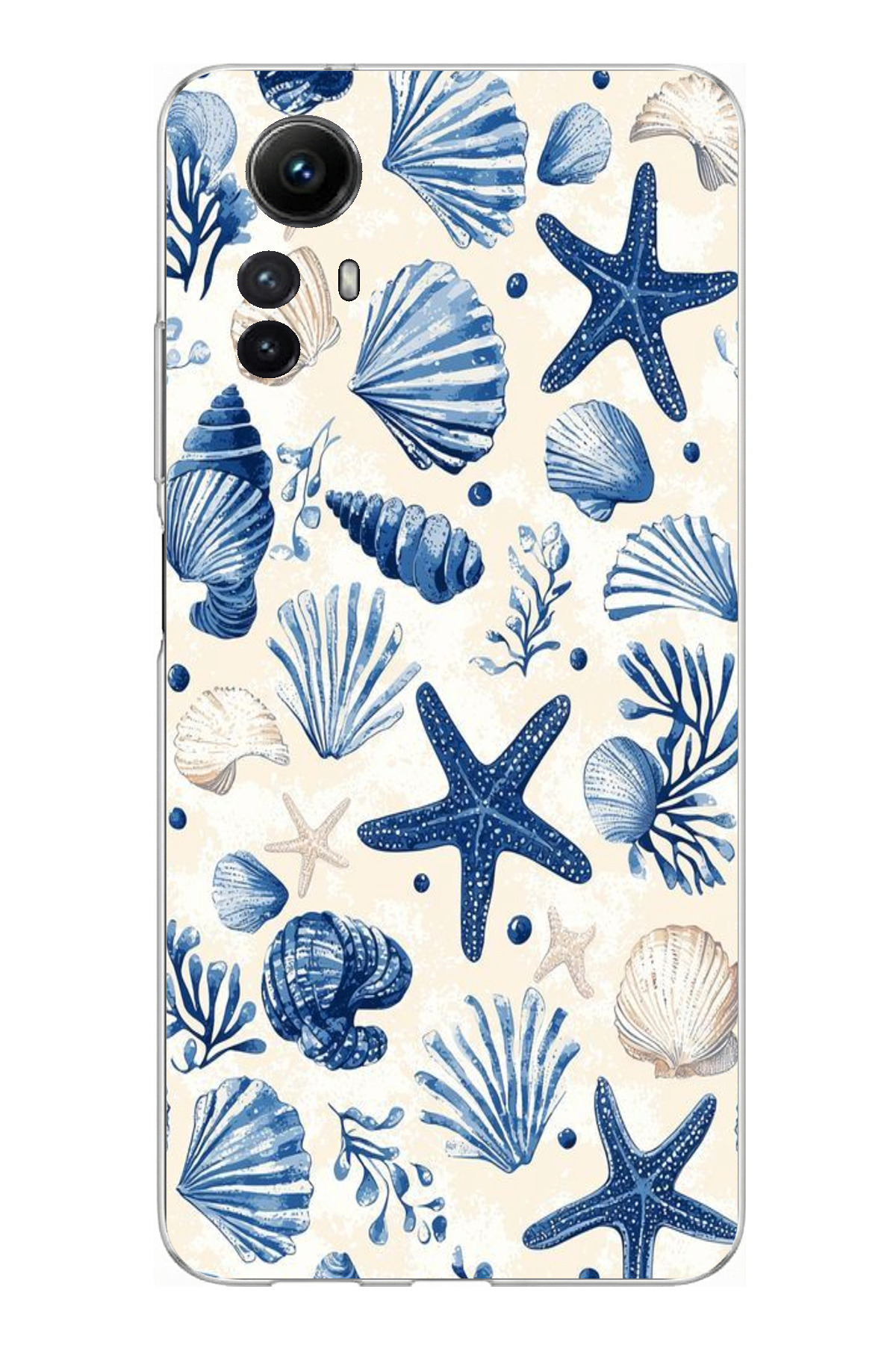 ميزات حافظة سيليكون مطبوع متوافقة مع هاتف Redmi Note 12S بنمط صدفة البحر الزرقاء والنجمة من TechTree