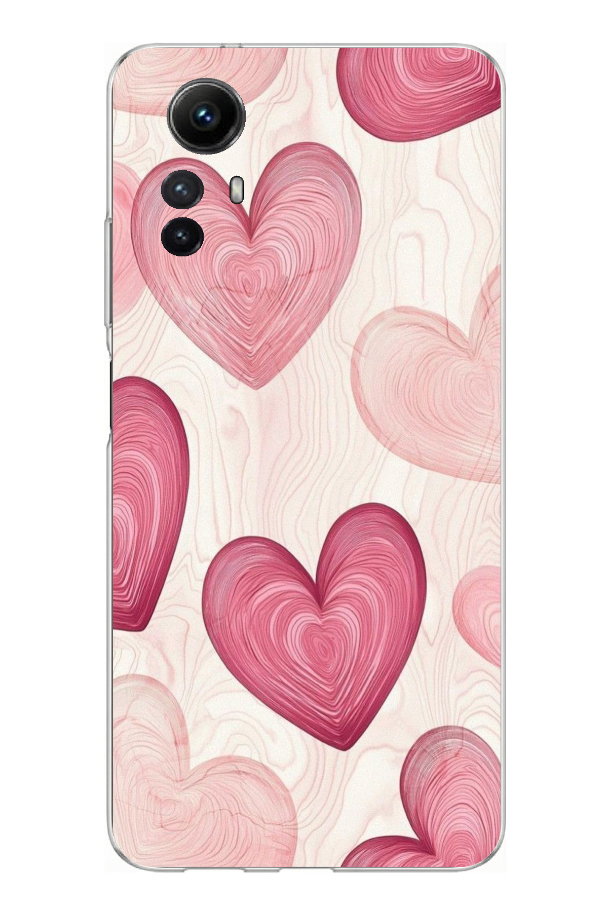 ميزات حافظة سيليكون متوافقة مع هاتف Redmi Note 12S باللون الوردي الخطوي مطبوع من TechTree