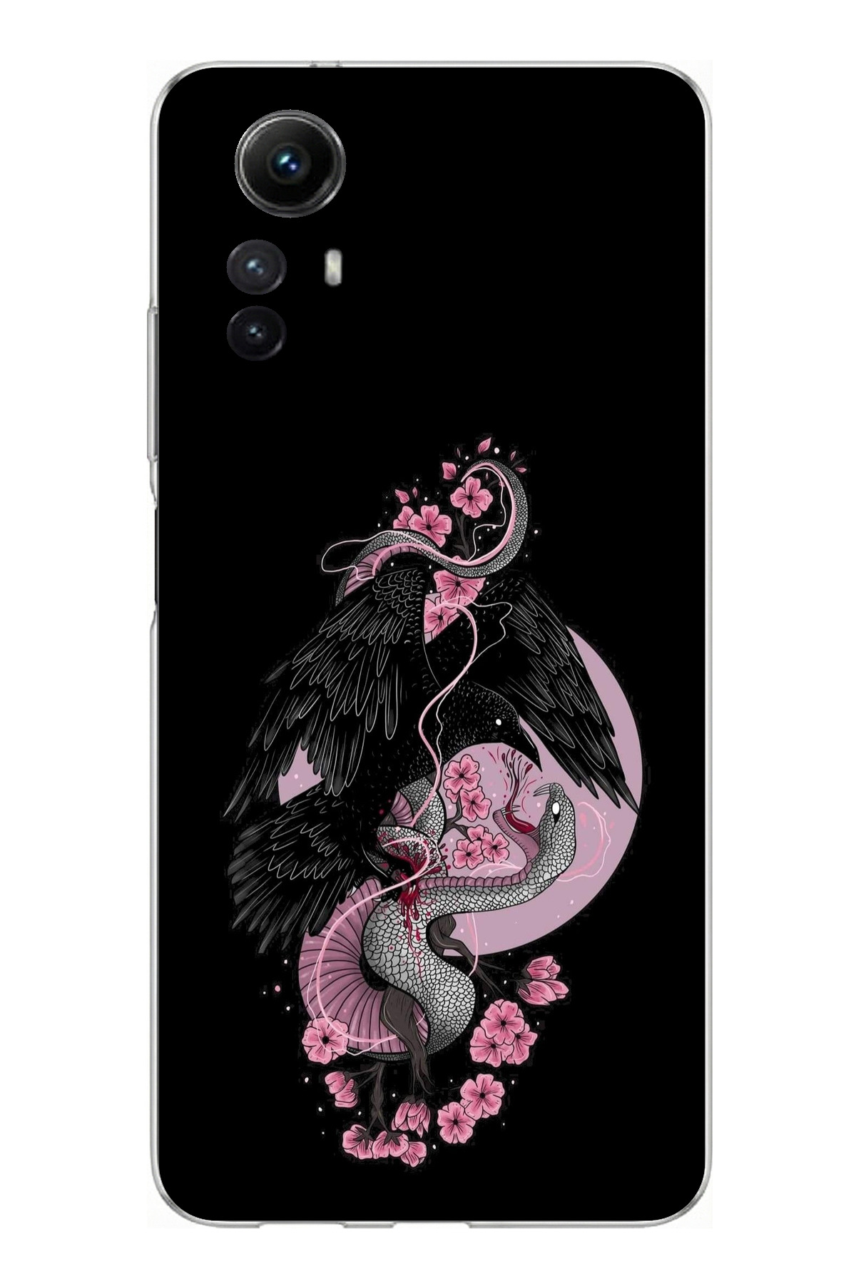 ميزات حافظة سيليكون متوافقة مع هاتف Redmi Note 12S باللون الوردي والأسود مطبوع من TechTree