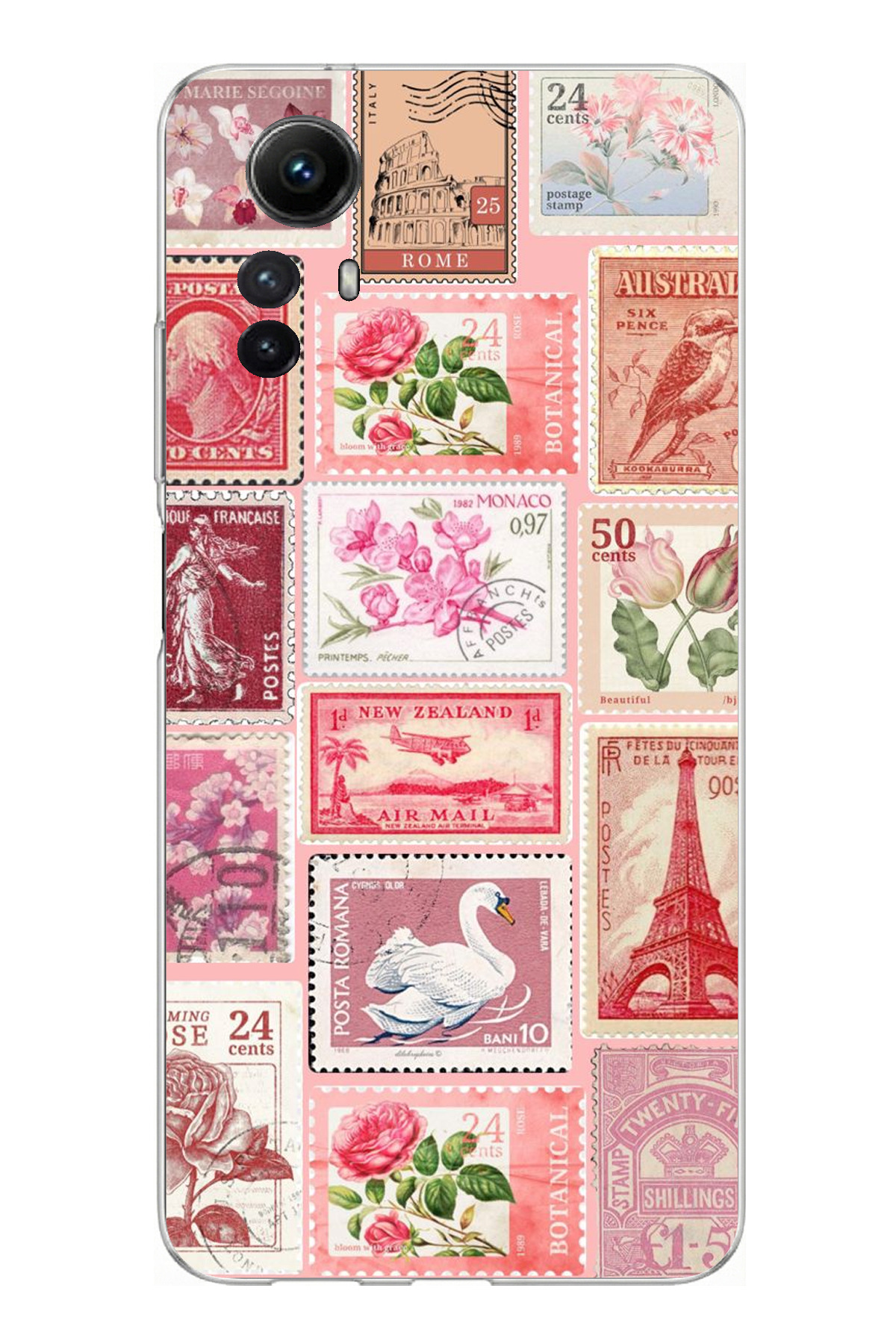 ميزات حافظة سيليكون متوافقة مع هاتف Redmi Note 12S باللون الوردي مطبوع من TechTree