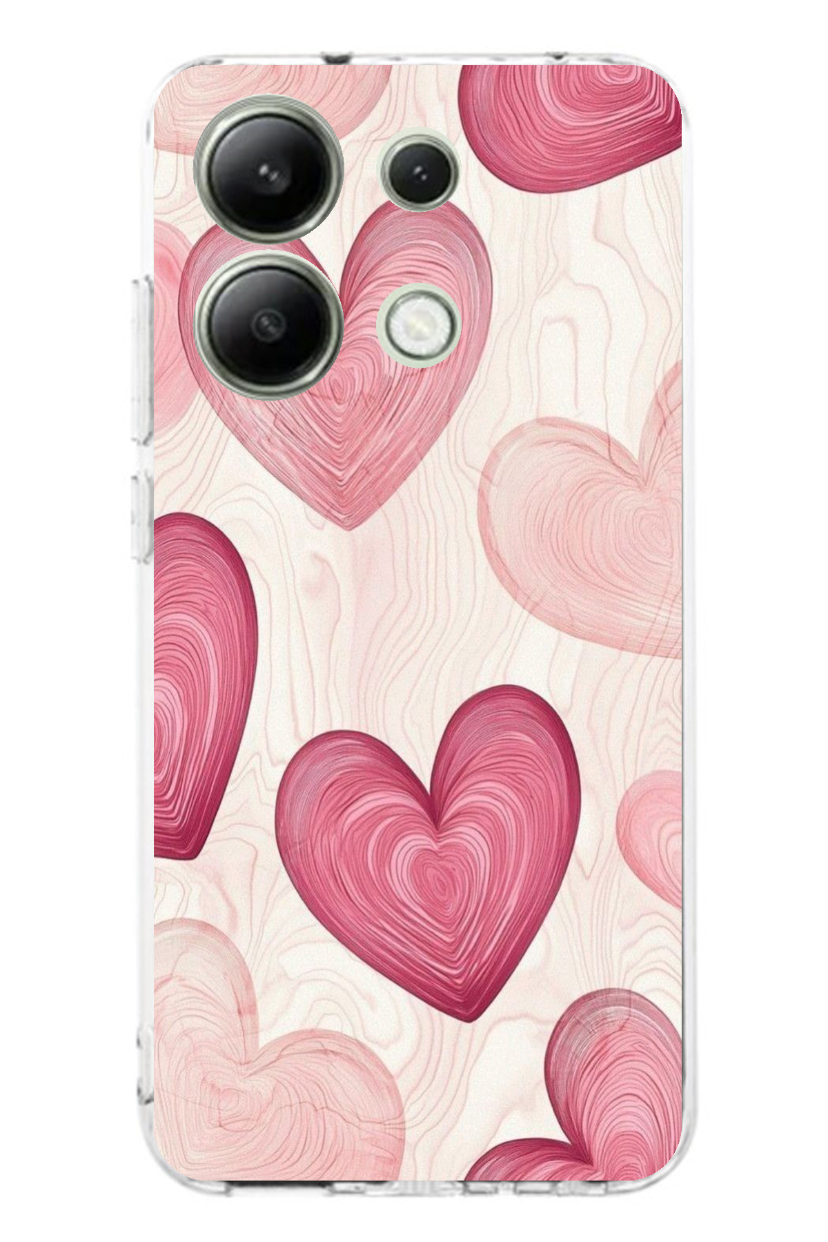 ميزات حافظة سيليكون متوافقة مع هاتف Redmi Note 13 4G باللون الوردي الخطوي مطبوع من TechTree