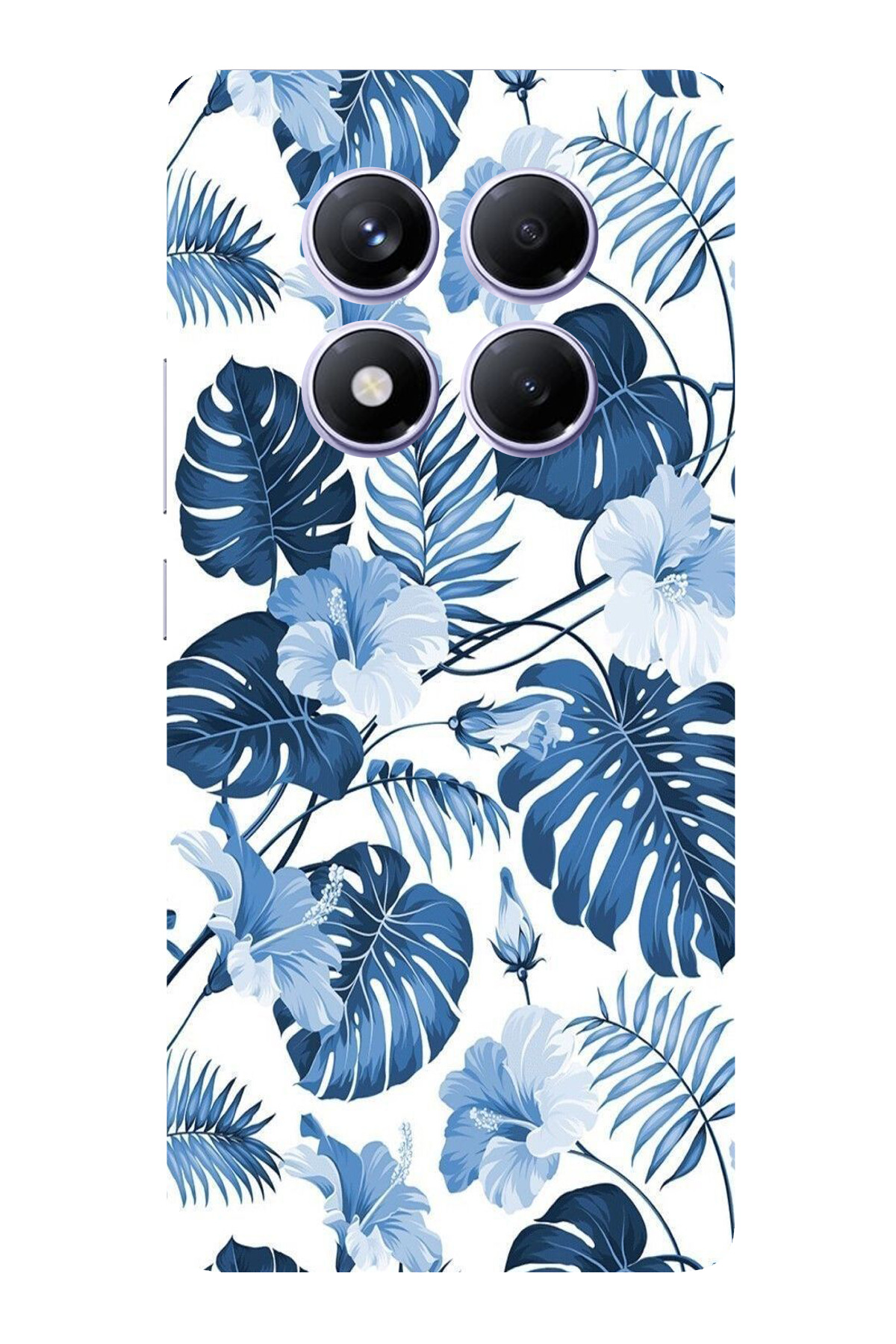 ميزات حافظة سيليكون مطبوع متوافقة مع Redmi Note 14 PRO PLUS بنمط أوراق الشجر الزرقاء والزهور من TechTree