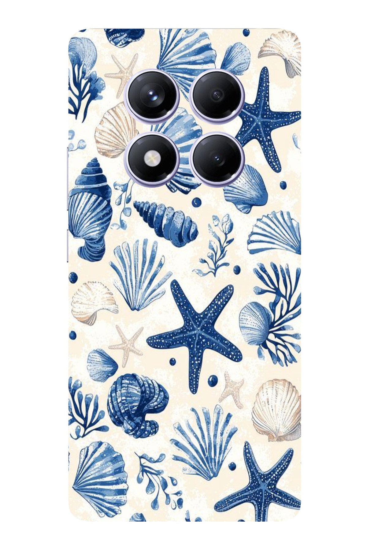 ميزات حافظة سيليكون مطبوع متوافقة مع هاتف Redmi Note 14 PRO PLUS بنمط صدفة البحر الزرقاء والنجمة من TechTree