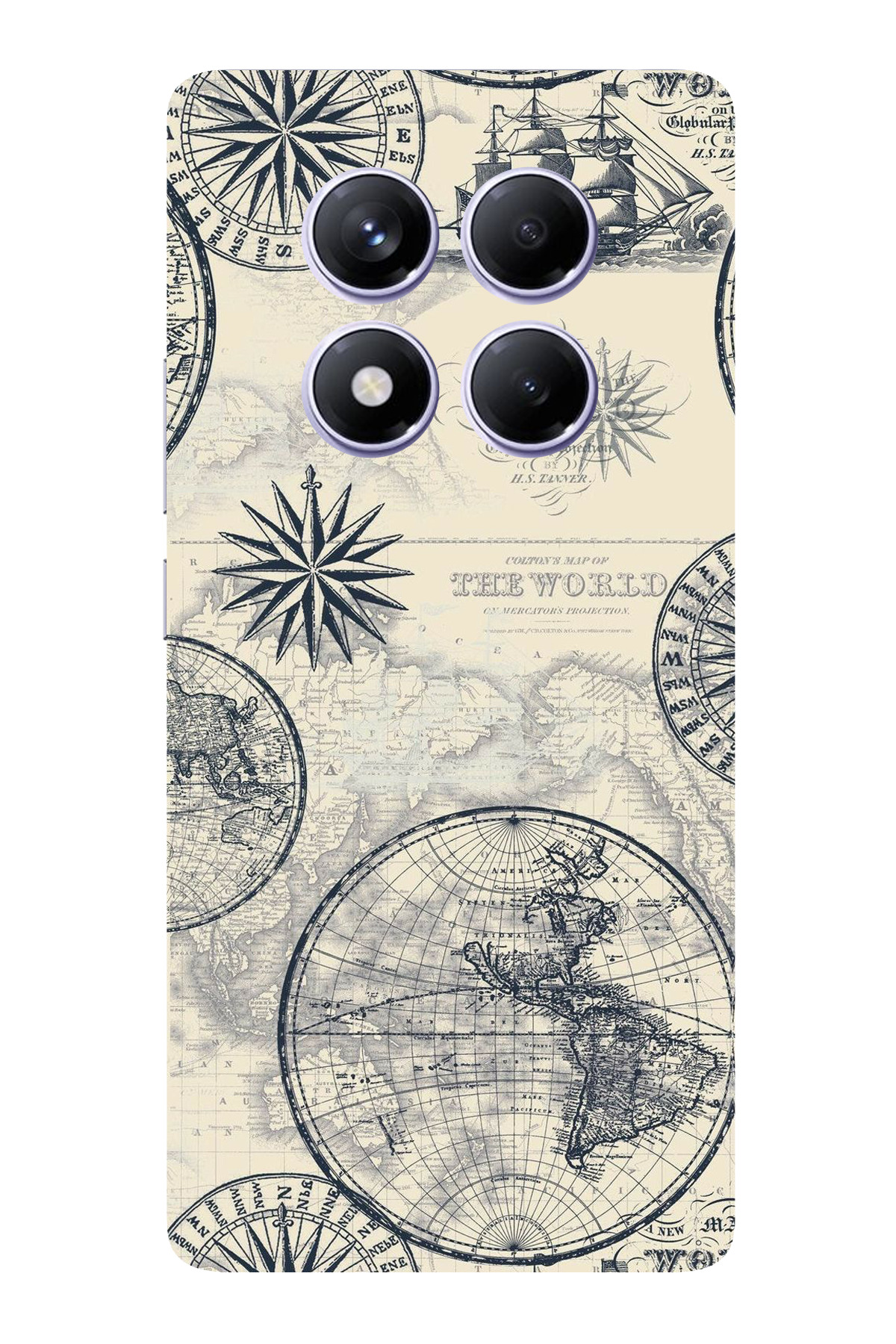 ميزات حافظة سيليكون متوافقة مع هاتف Redmi Note 14 PRO PLUS تحتوي على خريطة العالم القديمة والبوصلة مطبوع من TechTree