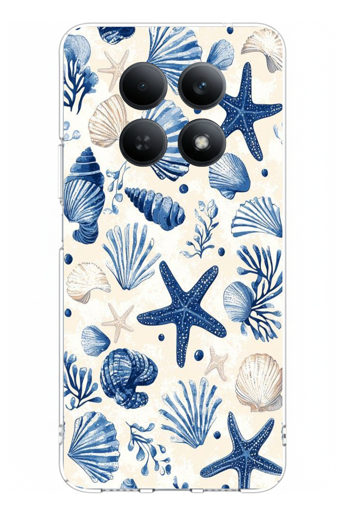 ميزات حافظة سيليكون مطبوعة بنمط صدفة البحر الزرقاء ونجمة متوافقة مع هاتف Redmi Note 15 4G من TechTree