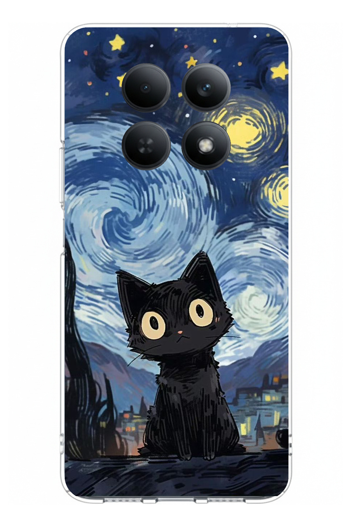 TechTree حافظة سيليكون مطبوعة بتصميم قطة منتصف الليل متوافقة مع هاتف Redmi Note 15 4G