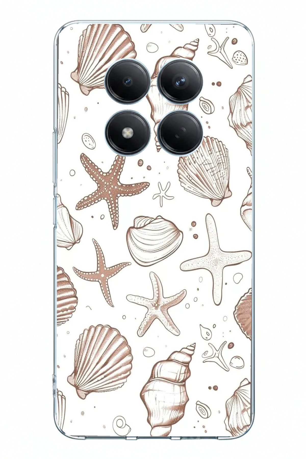 ميزات حافظة سيليكون متوافقة مع Redmi Note 15 PRO 5G مطبوعة بنجمة البحر البنية وطبعة الصدفة من TechTree