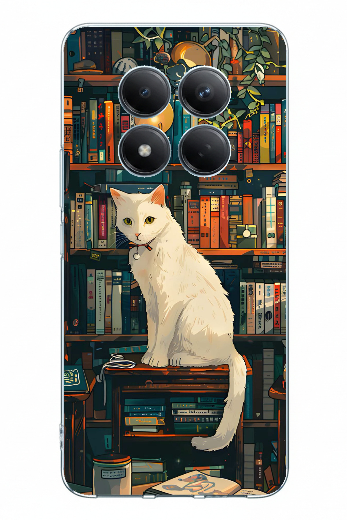 ميزات حافظة سيليكون مطبوعة بتصميم قطة بيضاء متوافقة مع Redmi Note 15 PRO PLUS من TechTree