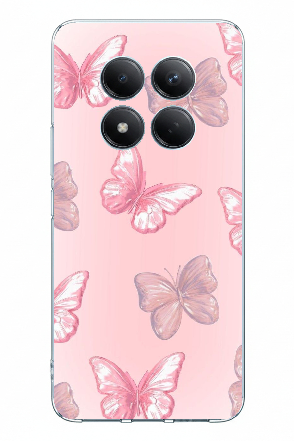 ميزات حافظة سيليكون مطبوعة على شكل فراشات وردية متوافقة مع هاتف Redmi Note 15 PRO PLUS من TechTree