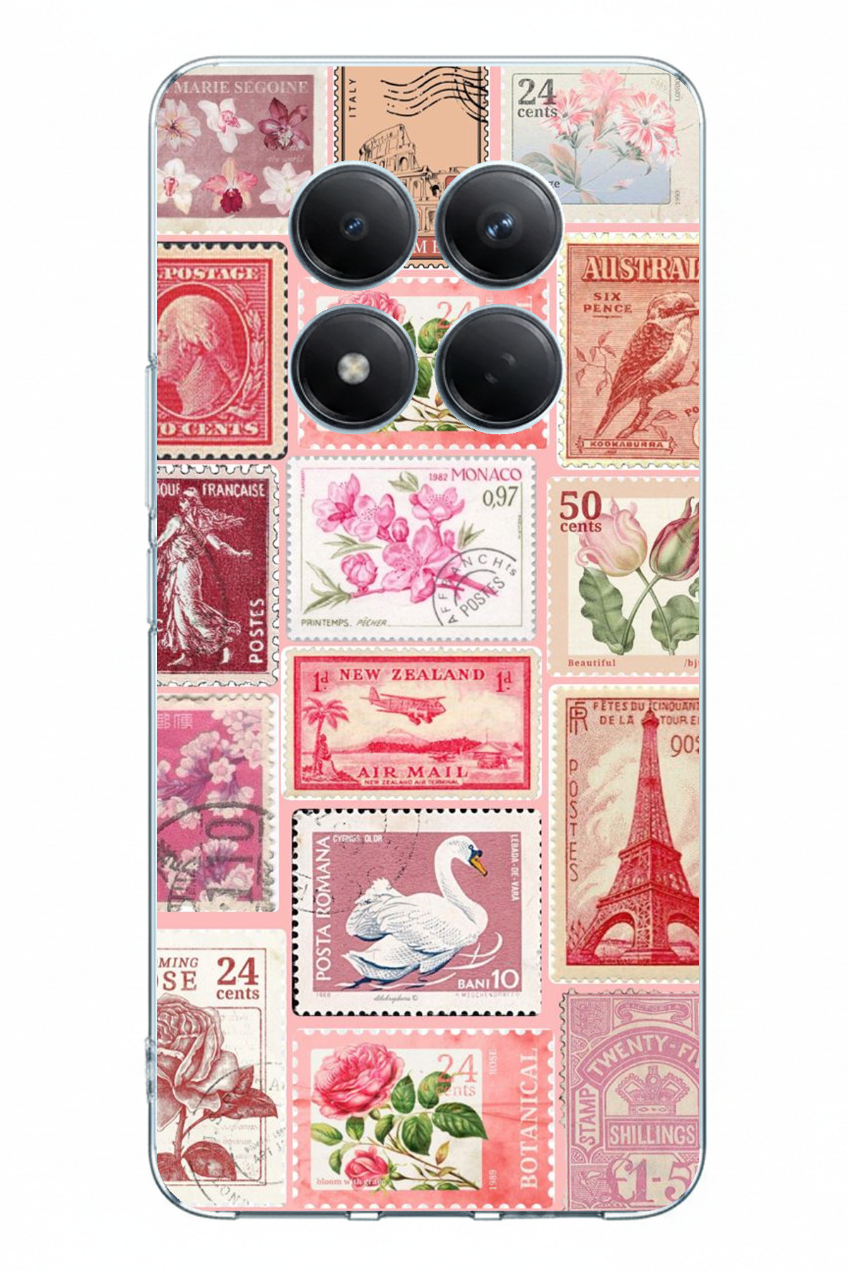 TechTree حافظة سيليكون مطبوعة بطبعة طوابع بريدية باللون الوردي متوافقة مع هاتف Redmi Note 15 PRO PLUS