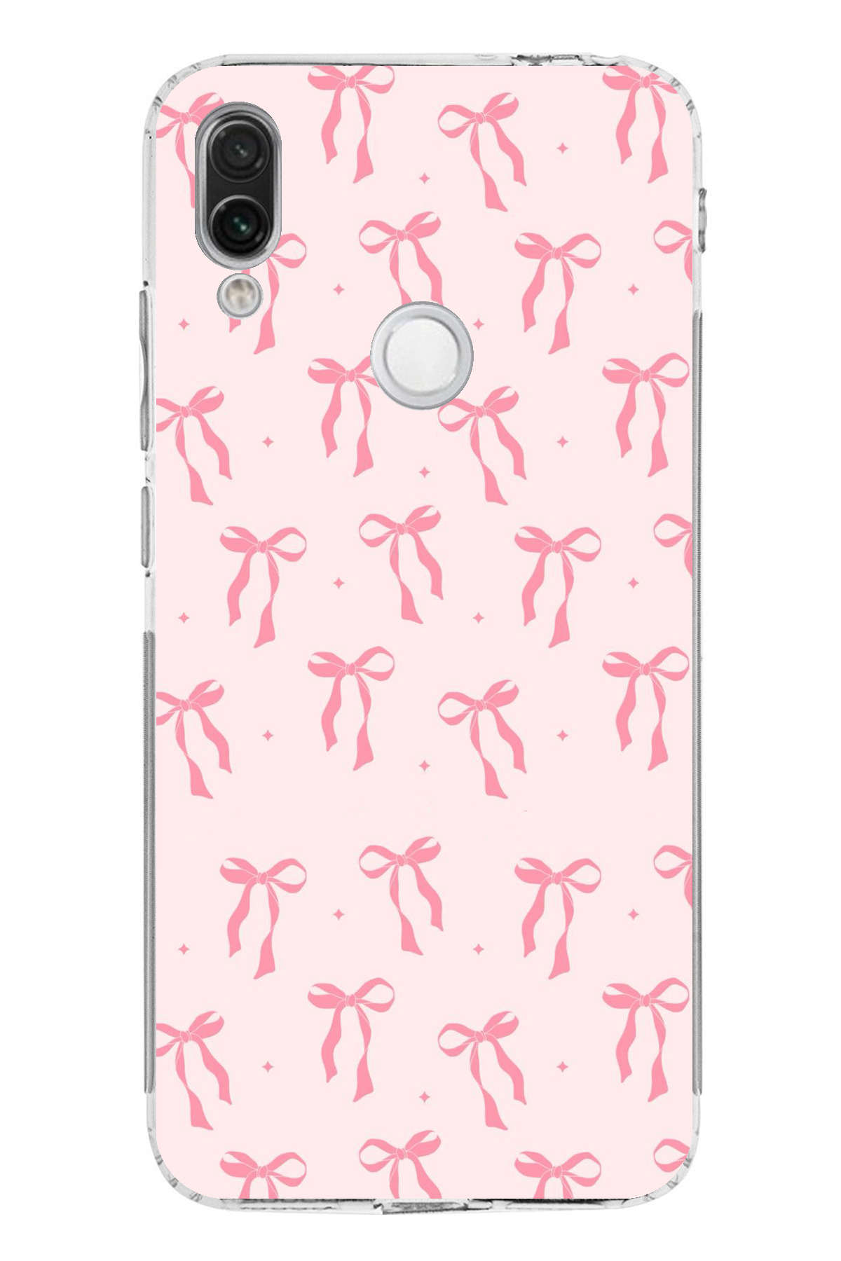 TechTree حافظة سيليكون مطبوع متوافقة مع هاتف Redmi Note 7-7 PRO بنمط فيونكة وردية ناعمة